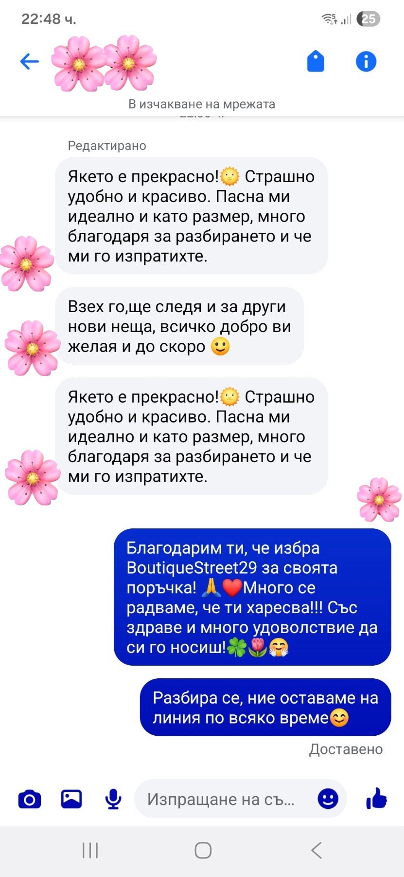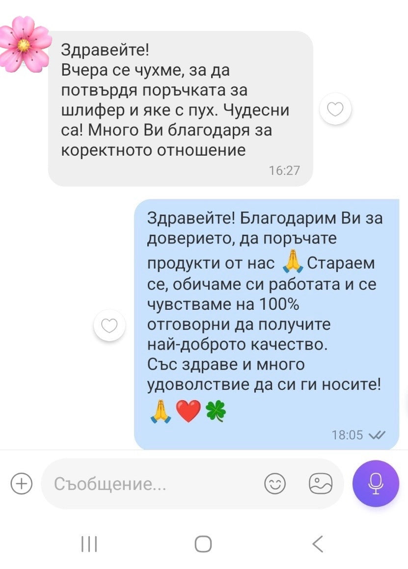 Благодарим от сърце на всички наши клиенти за доверието и прекрасните отзиви! Вашата подкрепа ни вдъхновява да предлагаме все по-качествени продукти и обслужване. Ако пазаруването при нас ви е донесло удоволствие, ще се радваме да споделите своя опит – вашето мнение е ценно за нас
