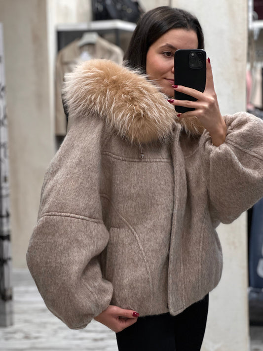 Дамско яке с гъши пух и естествен кафяв косъм-светло сиво