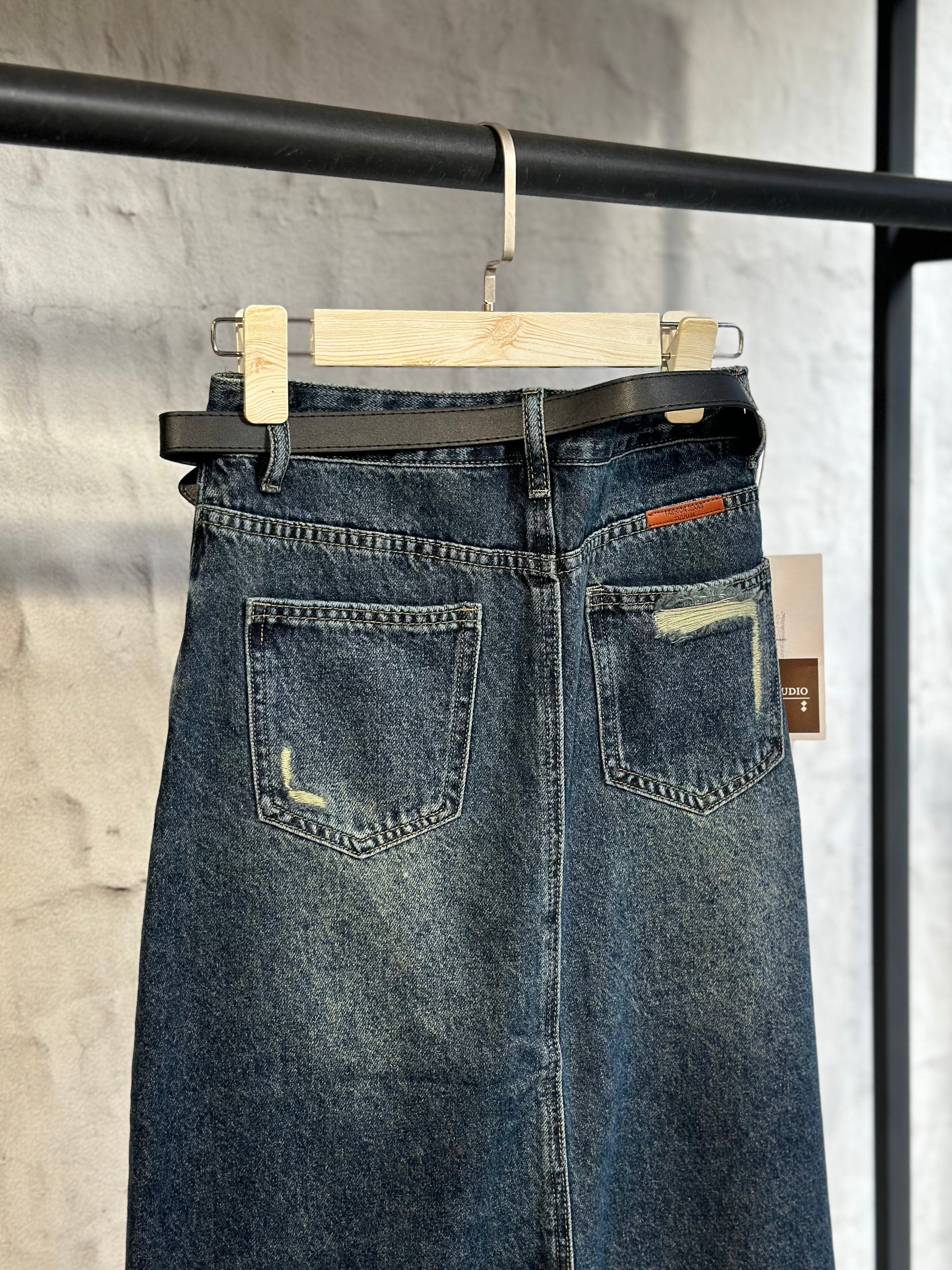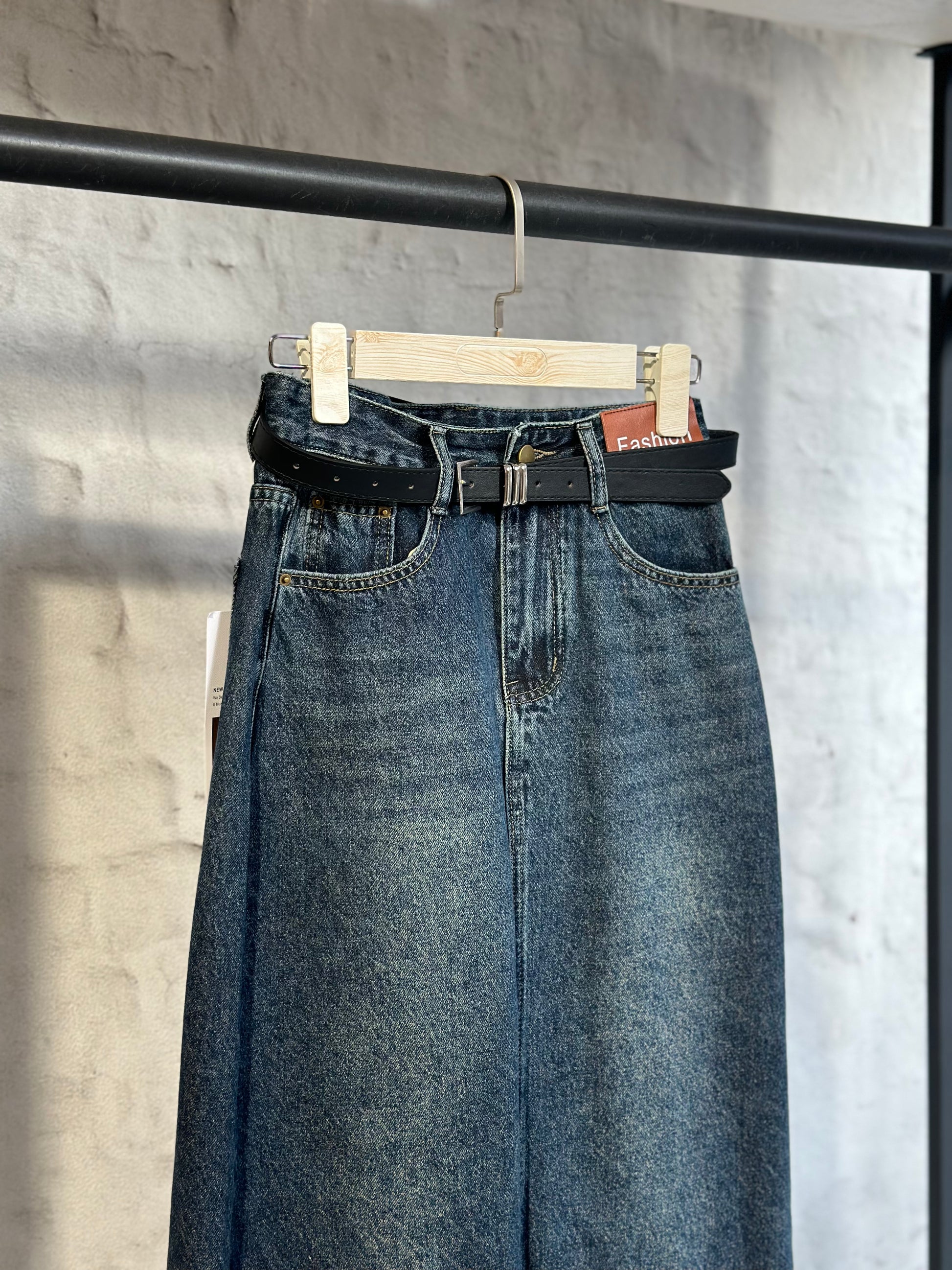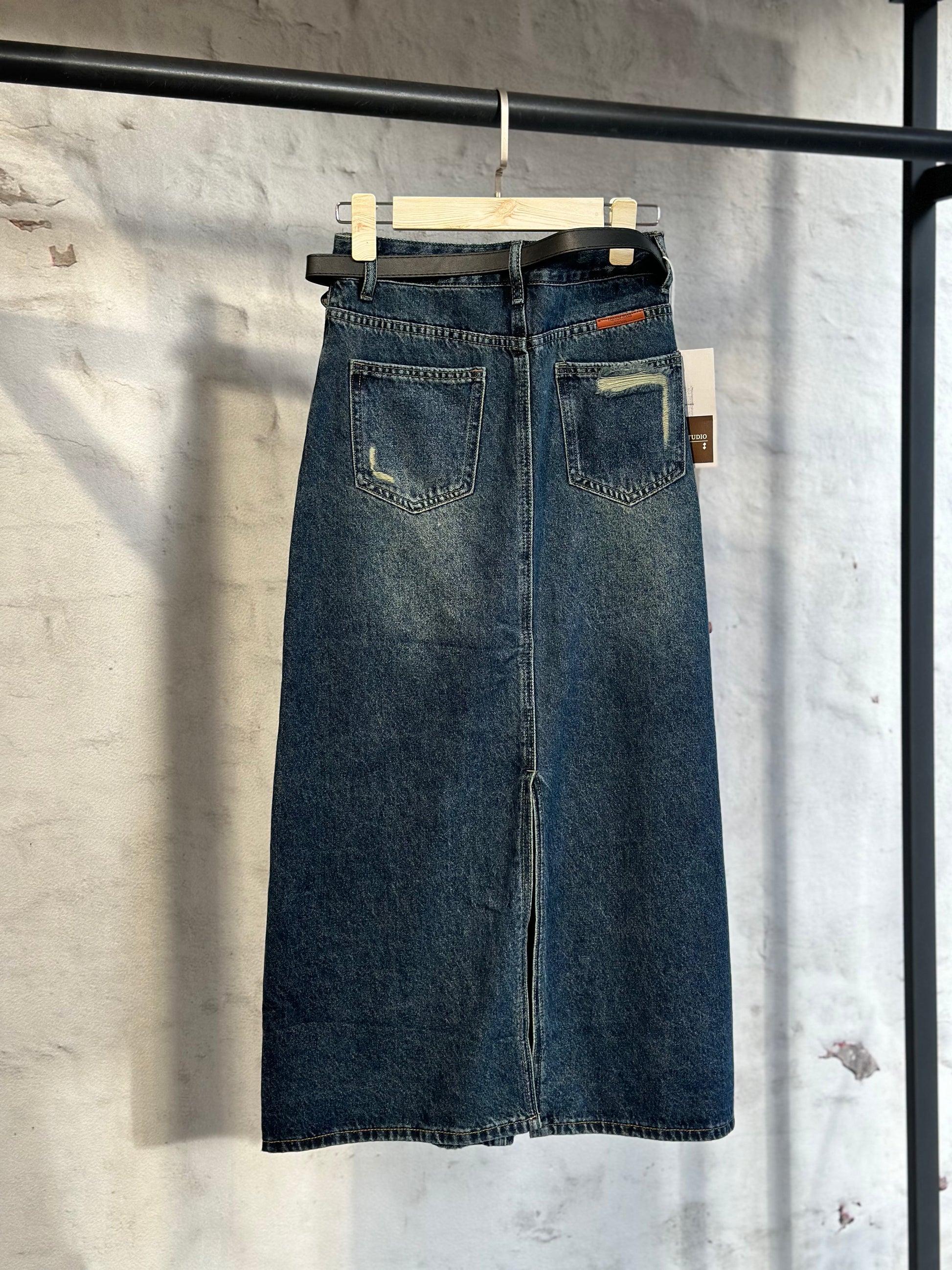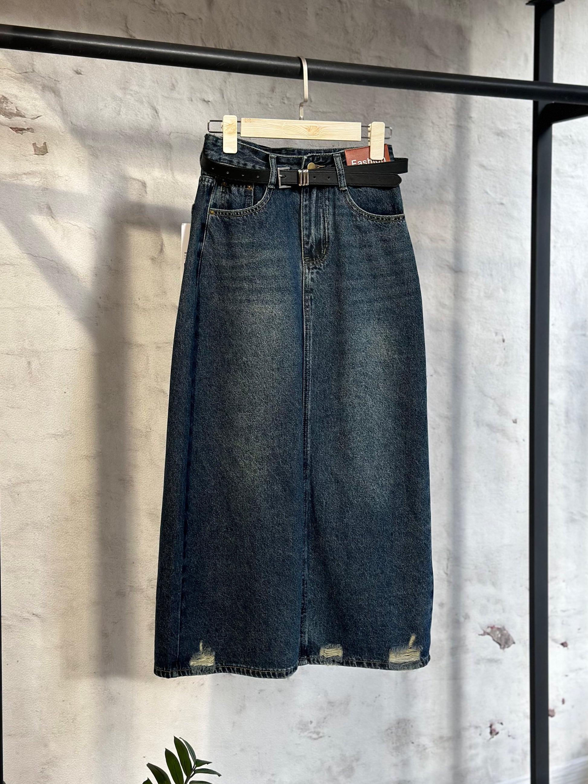 Класическа и стилна дамска дълга дънкова пола, вдъхновена от вечната визия на денима. Изработена от висококачествен памучен плат с еластичност, който осигурява комфорт и свобода на движение през целия ден. Моделът се отличава с изчистена линия и женствен силует, който подчертава фигурата, без да ограничава движението.