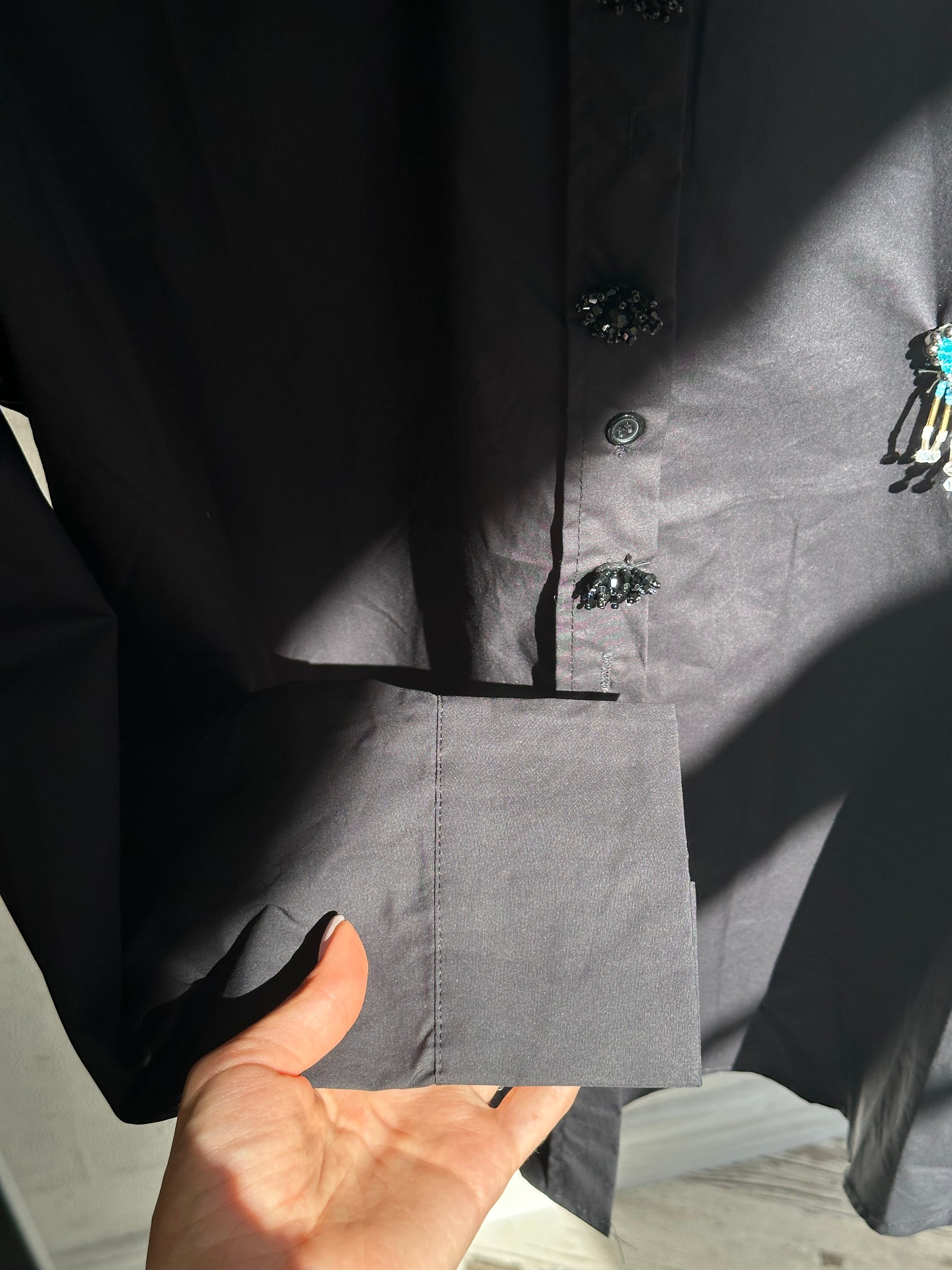 Тази риза е универсална – може да се носи както в ежедневието с дънки или панталони, така и като част от по-елегантен или офис тоалет, съчетана с пола или сако.