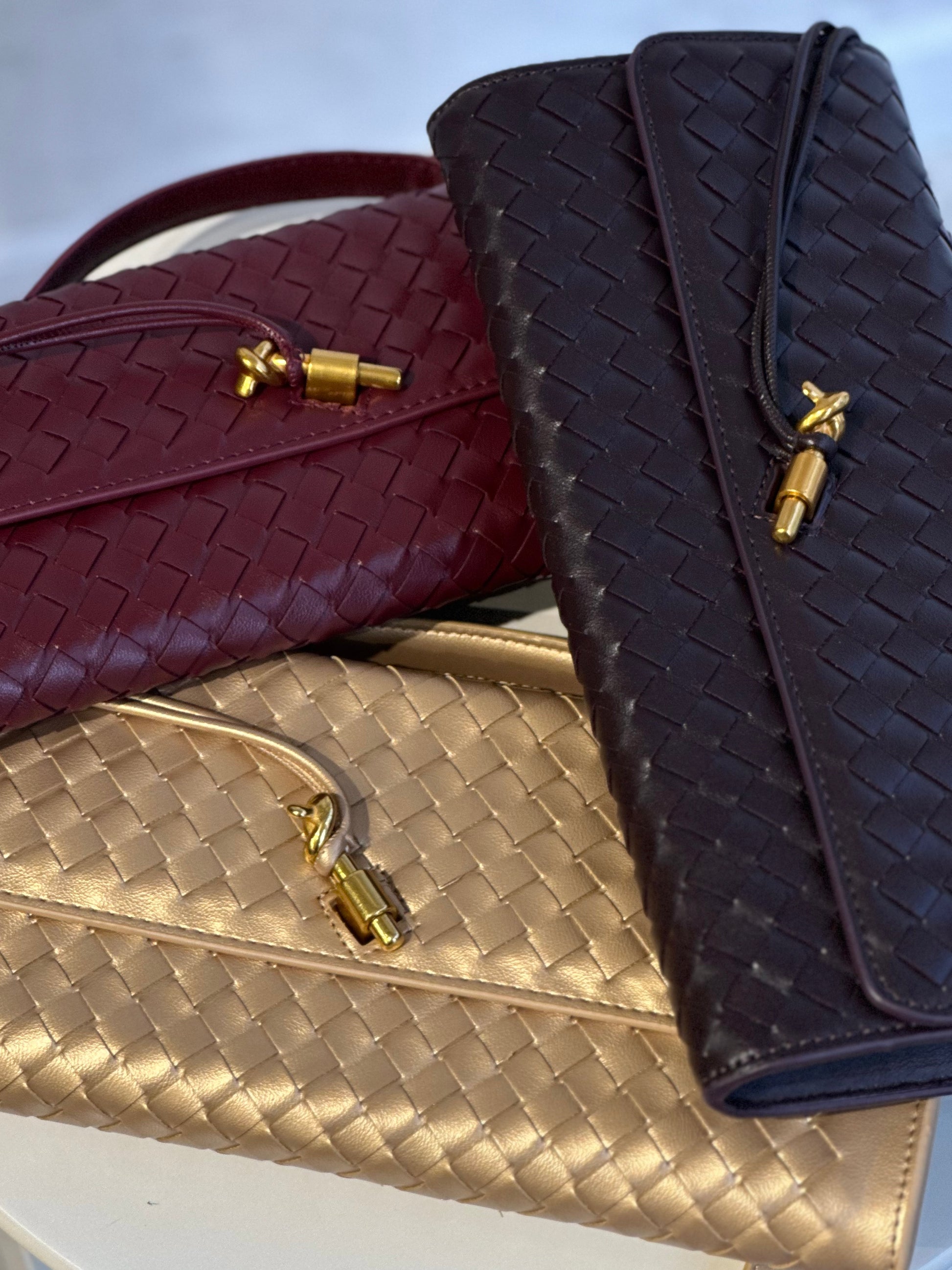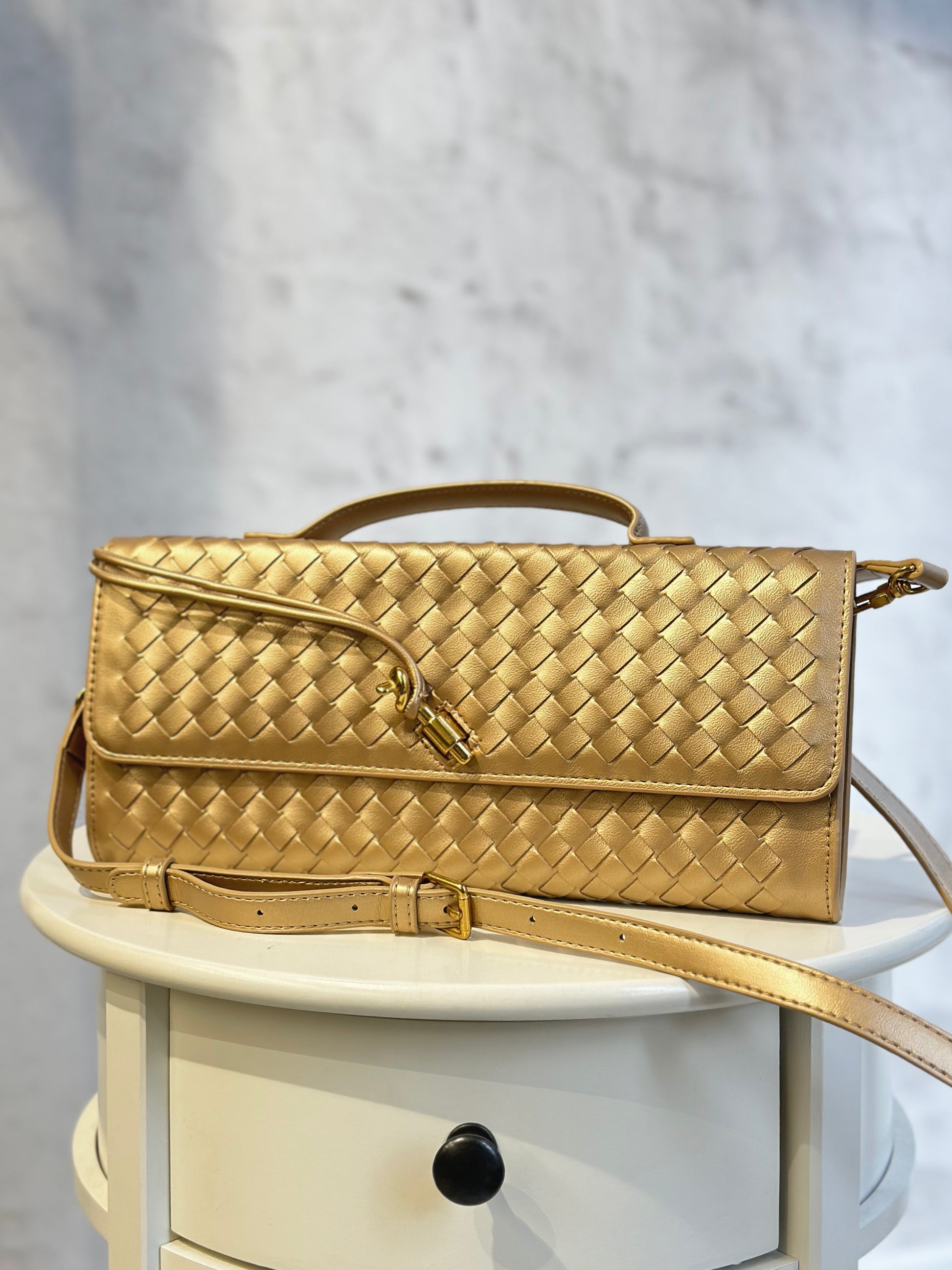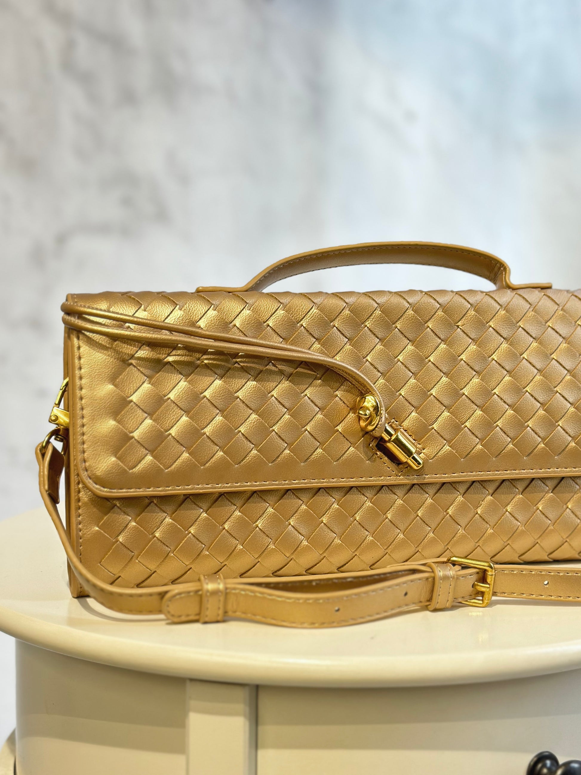 Дамска чанта Veneta от естествена кожа-златна