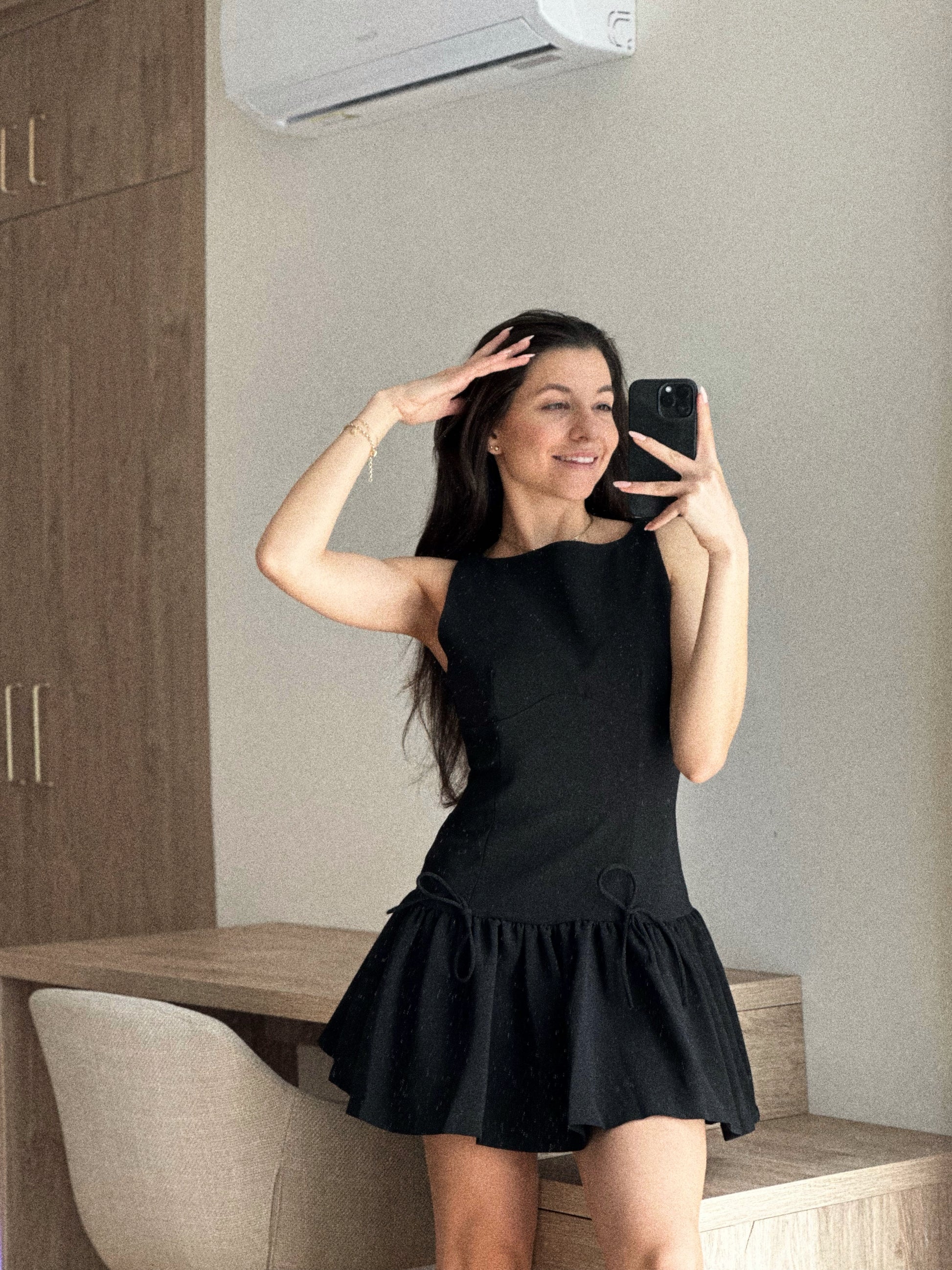 Тази черна коктейлна рокля съчетава класическа изтънченост с модерна визия. Изработена от висококачествена, леко еластична материя.