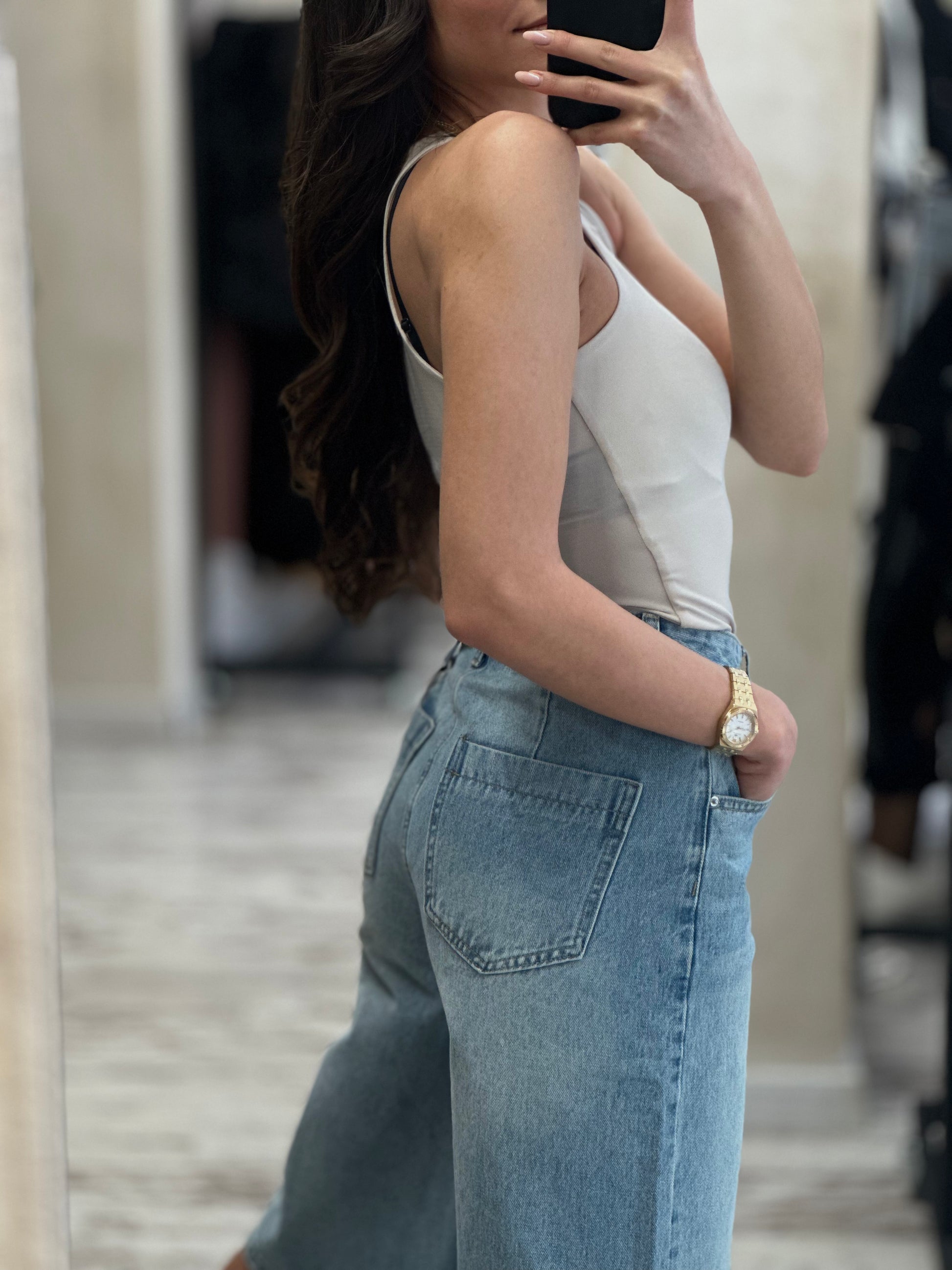 Дънките с широк крачол се комбинират лесно с различни топове и обувки – от тениски и блузи до елегантни ризи и ботуши или сандали. Те са идеални както за ежедневието, така и за по-неформални поводи, като добавят елегантност и лекота на визията.