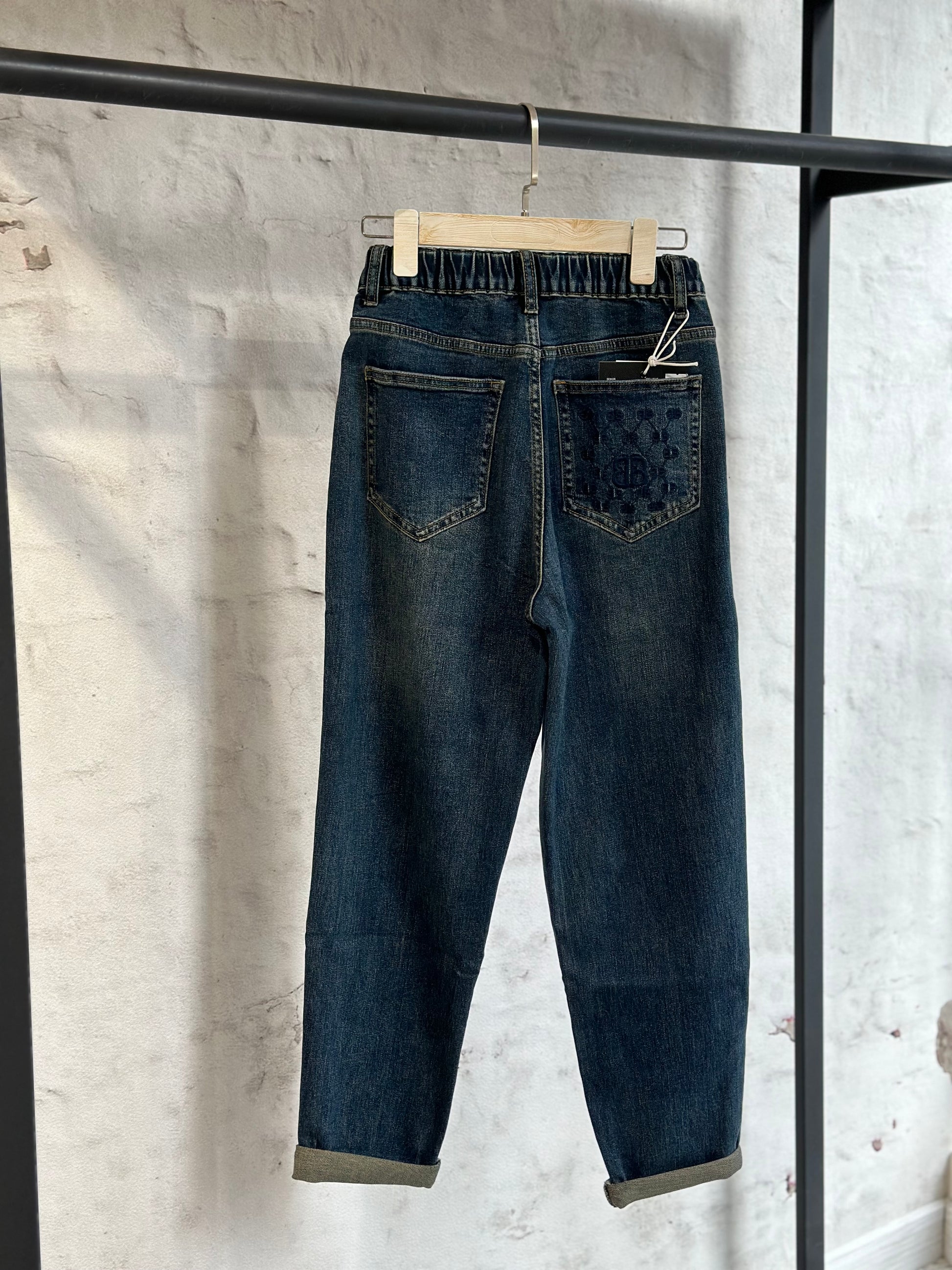 Дамските дънки с висока талия са много удобни, представляват стилен и практичен елемент от гардероба, съчетаващ модерен дизайн с комфорт и лекота на носене. Те са изработени от еластична деним тъкан което осигурява отлична свобода на движение и удобство през целия ден. Високата талия на дънките подчертава естествените линии на тялото, като същевременно предлага допълнителна подкрепа в коремната област и визуално удължава краката.