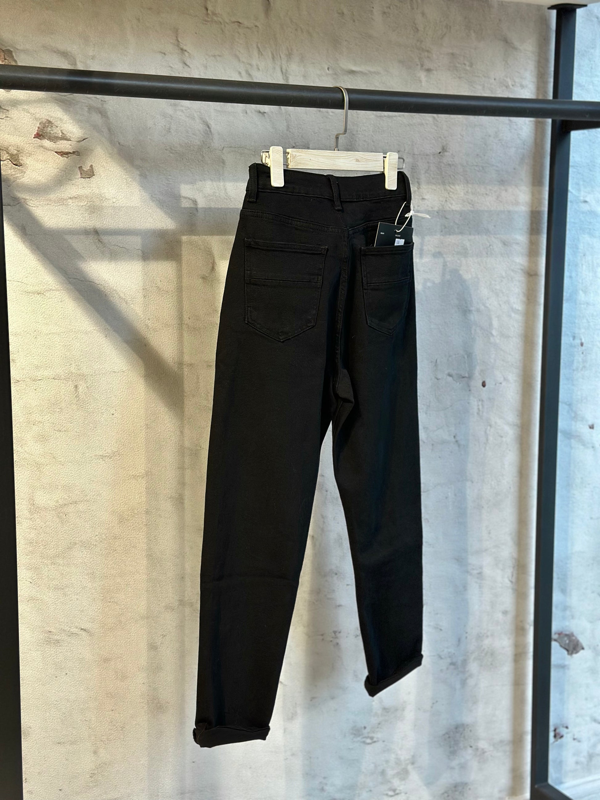 Дамските дънки с висока талия са много удобни, представляват стилен и практичен елемент от гардероба, съчетаващ модерен дизайн с комфорт и лекота на носене. Те са изработени от еластична деним тъкан което осигурява отлична свобода на движение и удобство през целия ден. Високата талия на дънките подчертава естествените линии на тялото, като същевременно предлага допълнителна подкрепа в коремната област и визуално удължава краката.