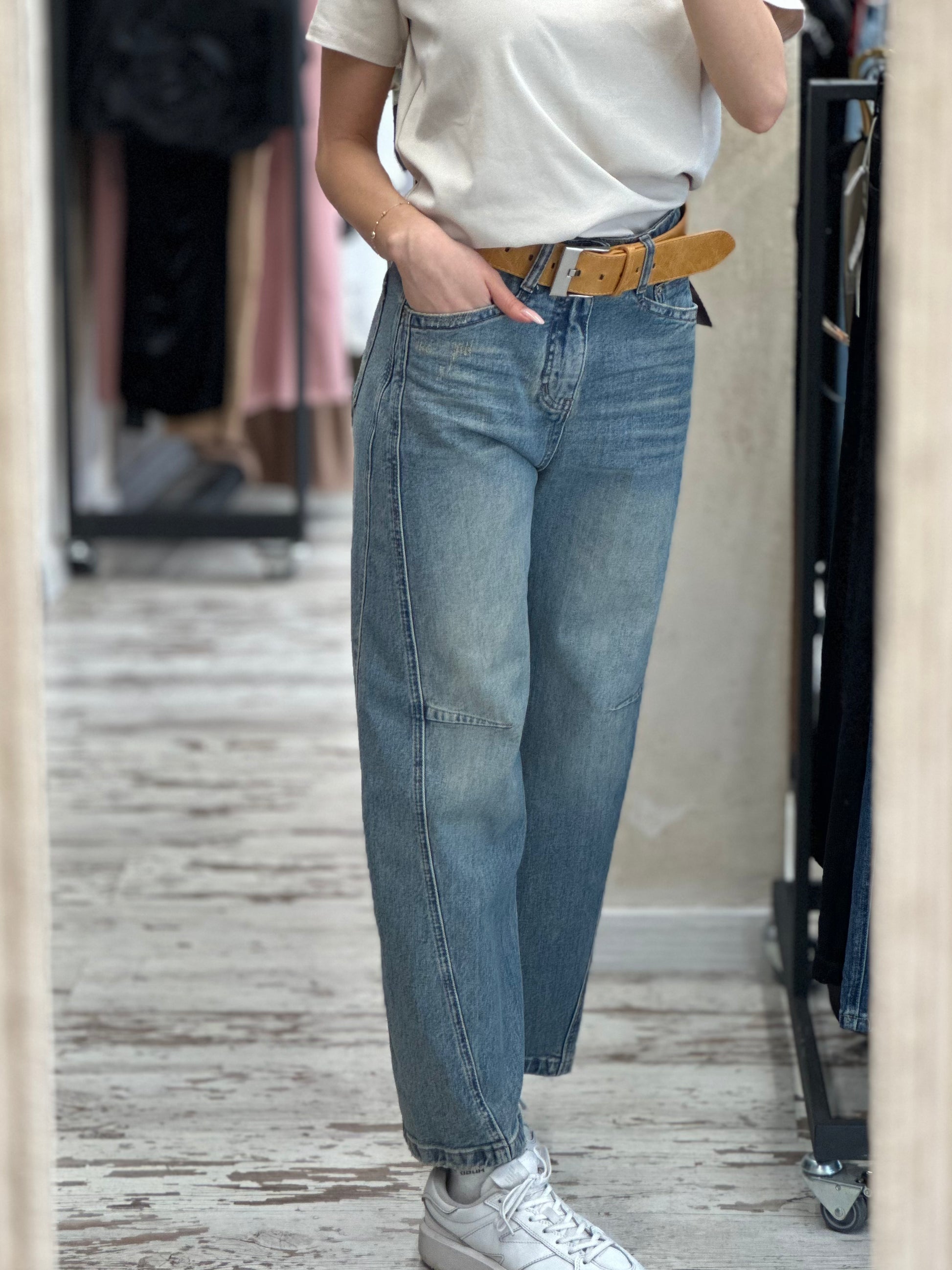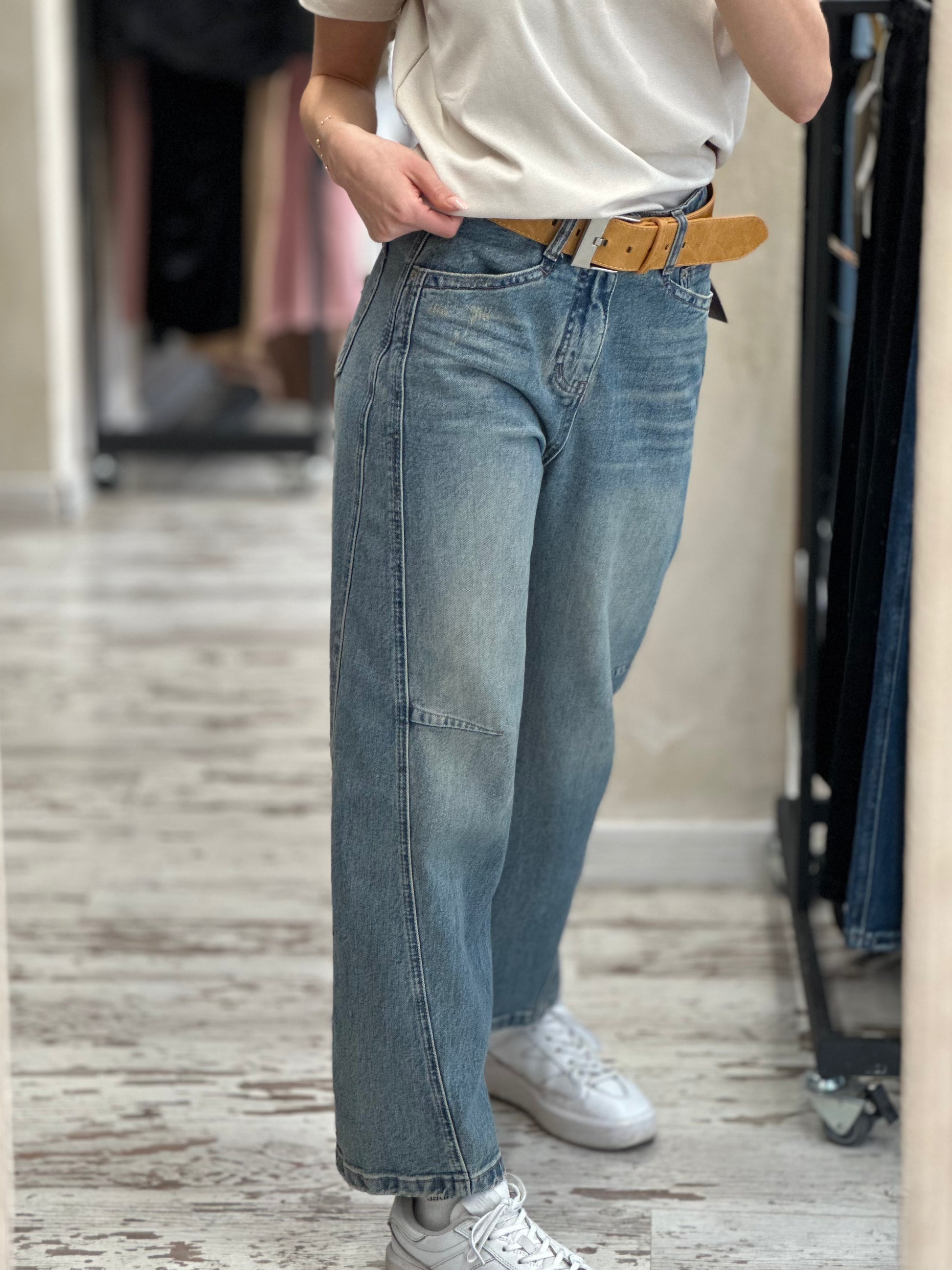 Дамски дънки с колан