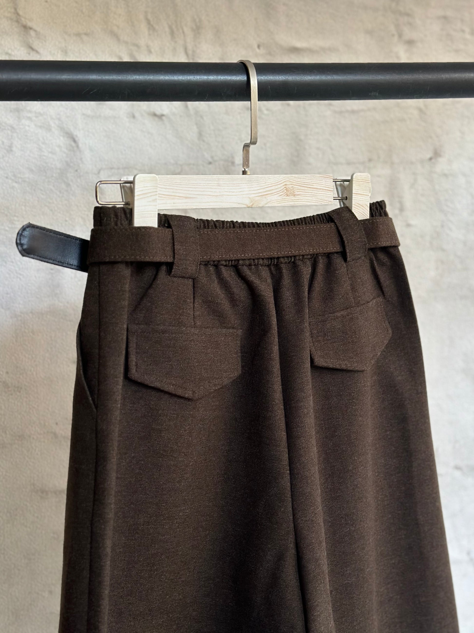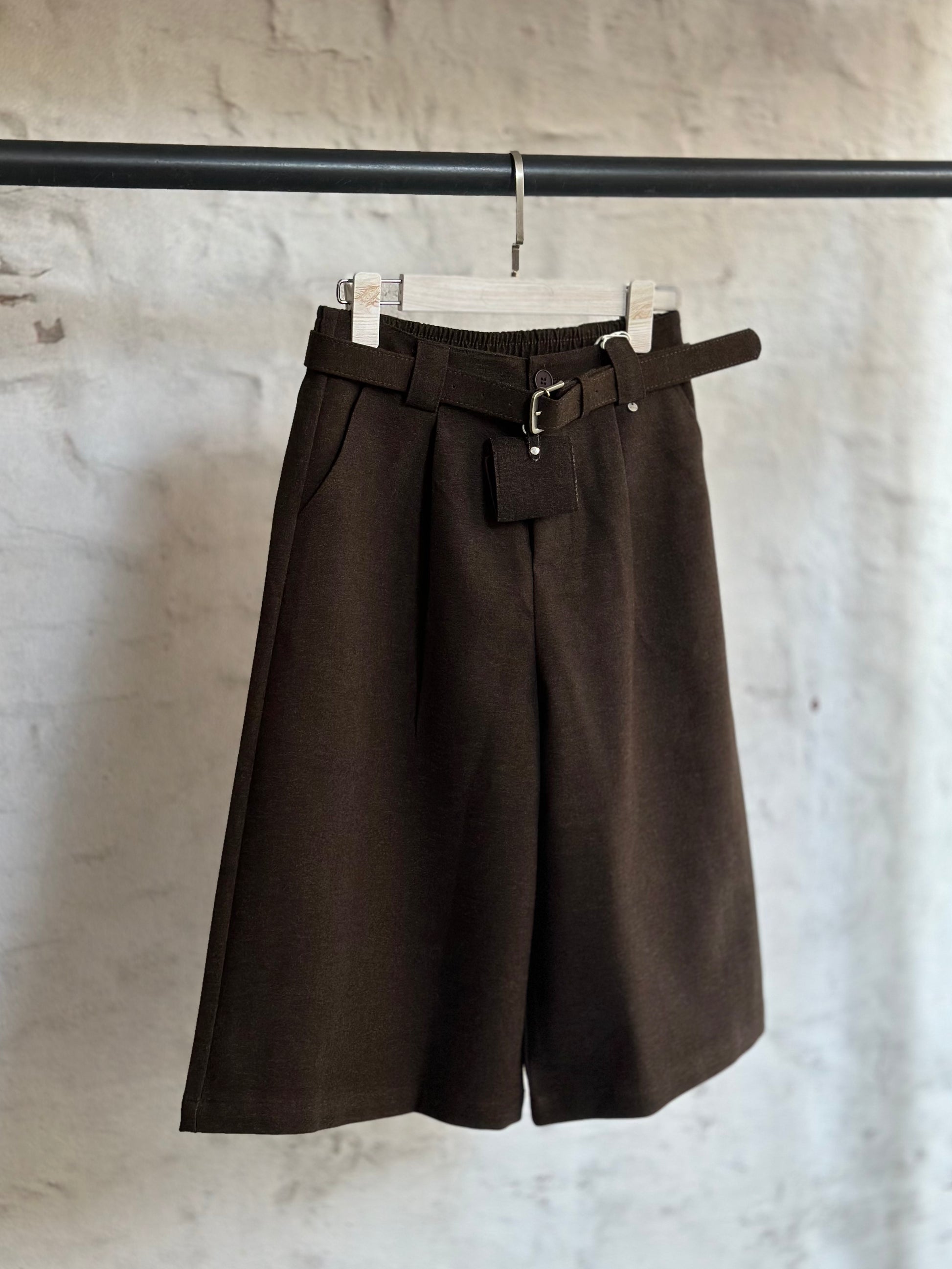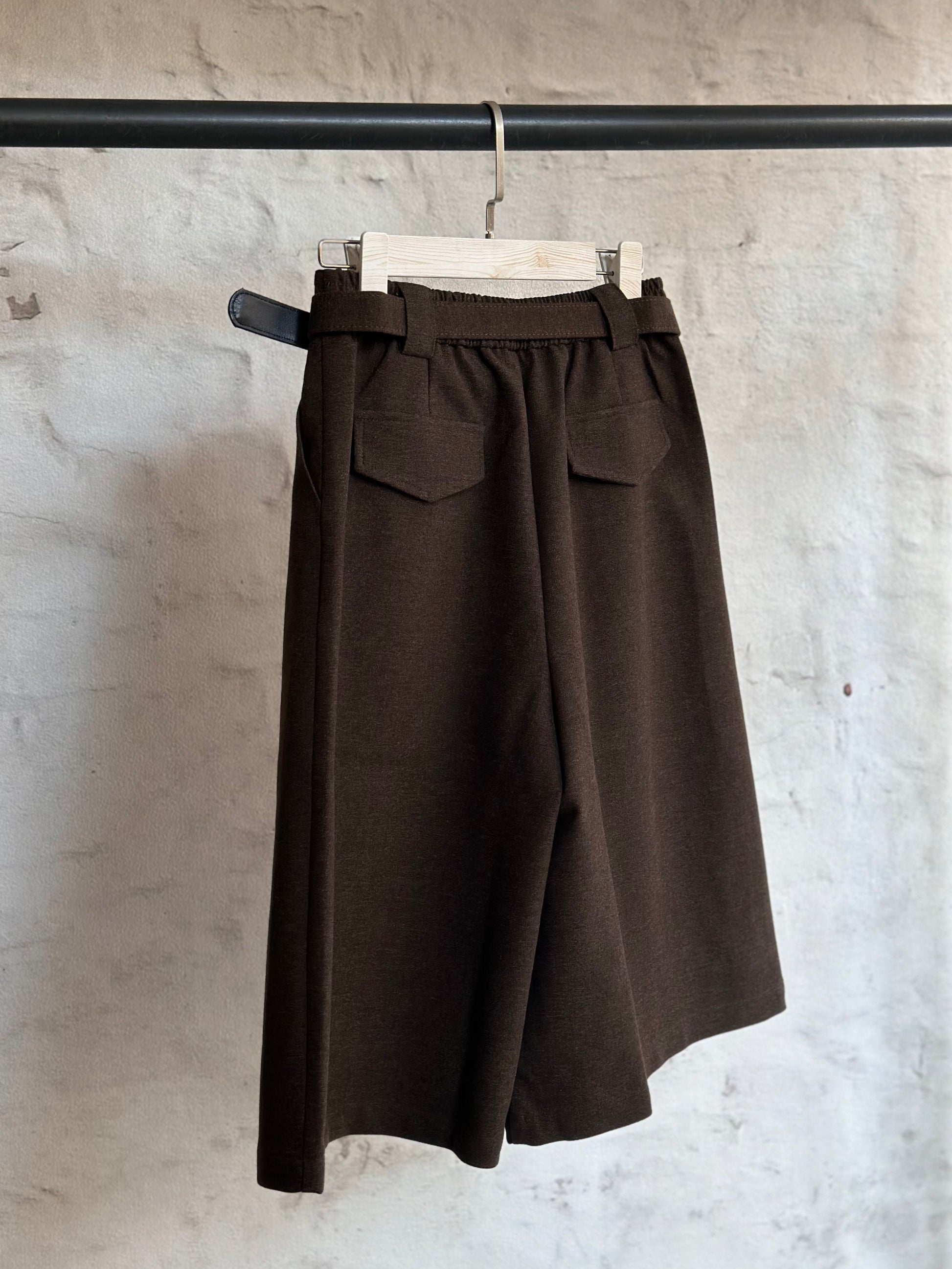 Създайте перфектната спортно-елегантна визия с този удобен панталон в кафяв цвят с изчистена кройка. Дължината на крачола е малко под коляното.