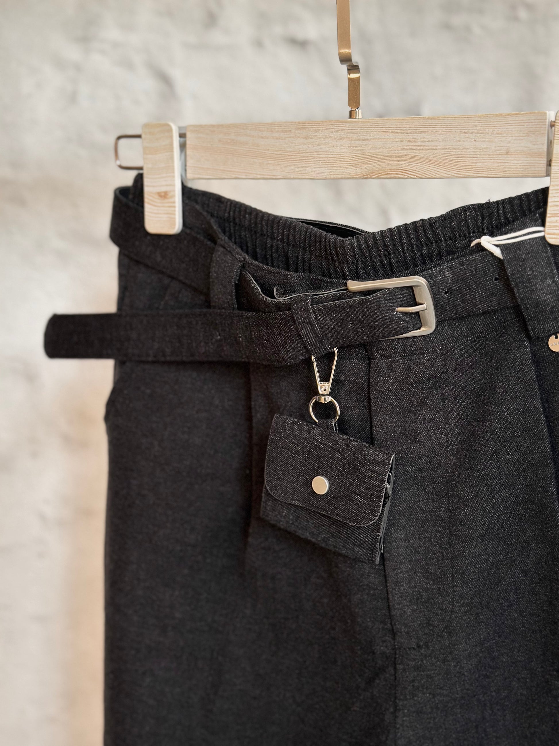 Създайте перфектната спортно-елегантна визия с този удобен панталон в графитен цвят с изчистена кройка. Дължината на крачола е малко под коляното.