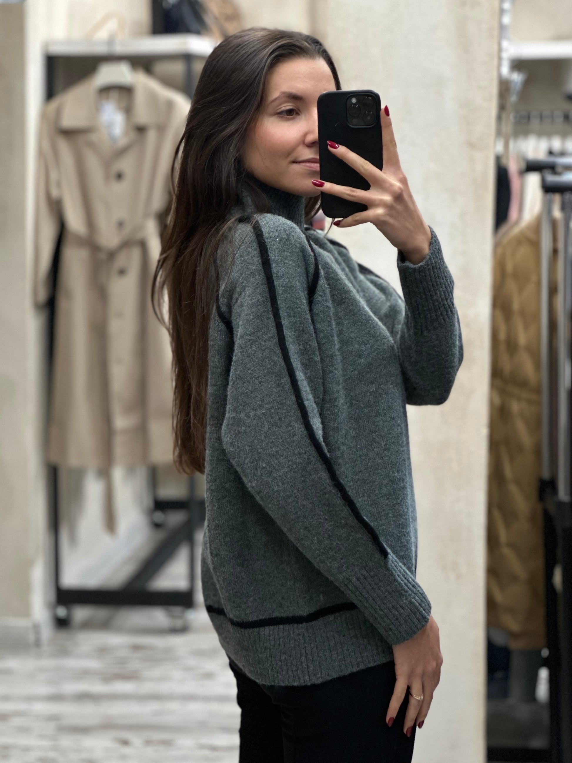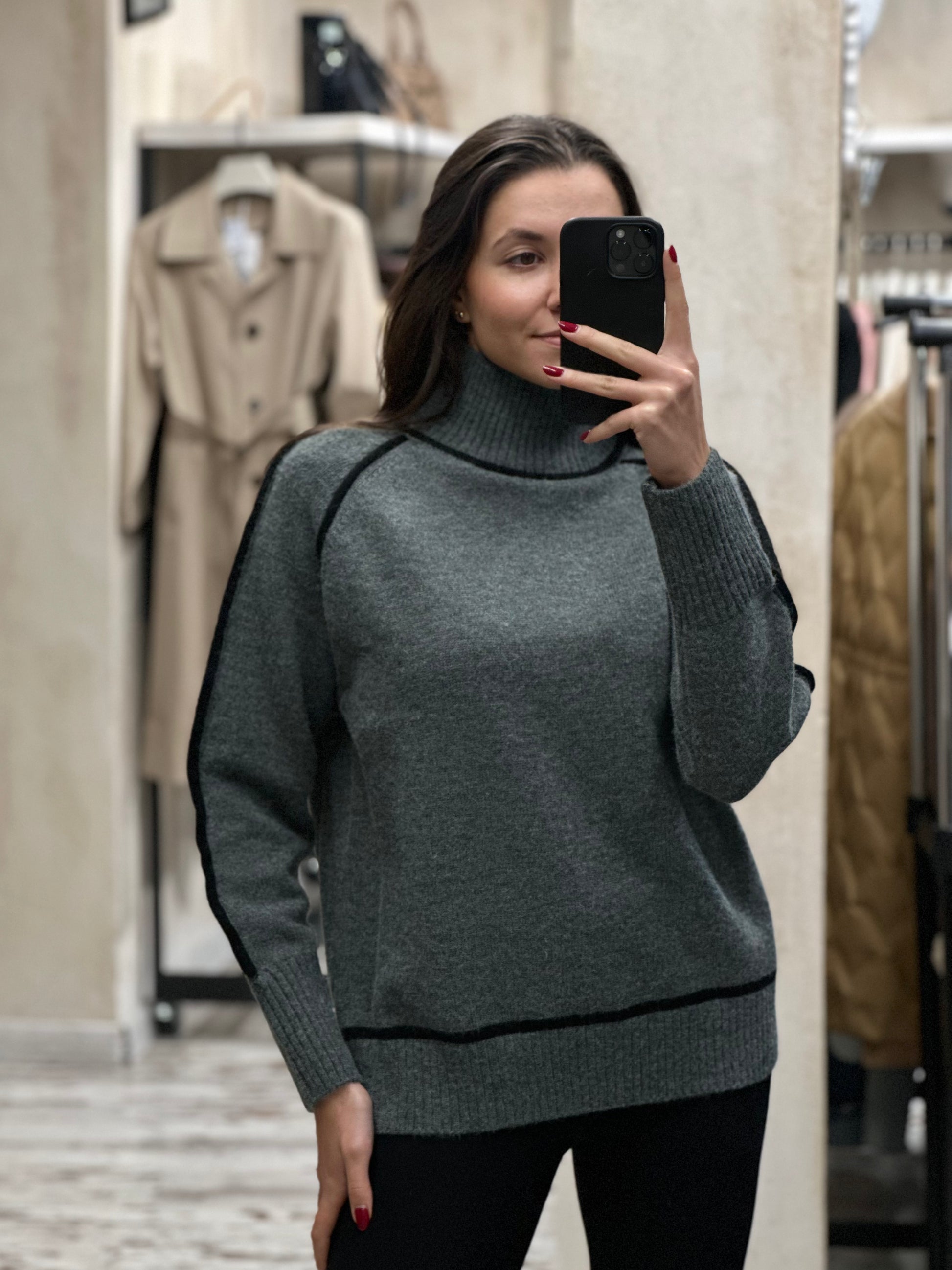 Топъл дамски пуловер с полу-поло яка. Мек, уютен и идеален за студените дни. Полу-поло яката осигурява допълнителна топлина, без да стяга, а кройката е удобна и подходяща за всяка фигура. Лесно се комбинира с дънки, панталон или пола – перфектен избор за ежедневието.