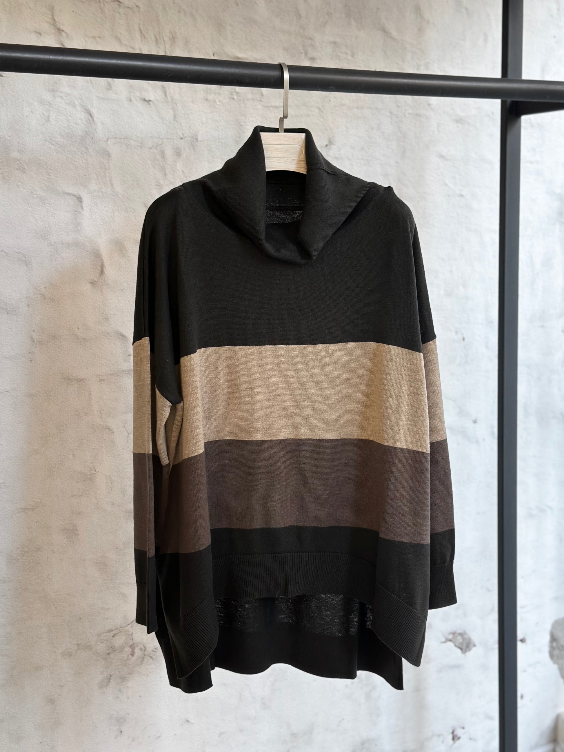 Стилен дамски пуловер от фино плетиво със свободна кройка. Моделът пада леко по тялото, осигурява комфорт и е идеален за по-пълни дами, тъй като прикрива нежеланите зони и подчертава силуета. Меката материя е приятна на допир и подходяща за ежедневието или по-елегантни визии. Универсален модел, който лесно се комбинира с всичко.