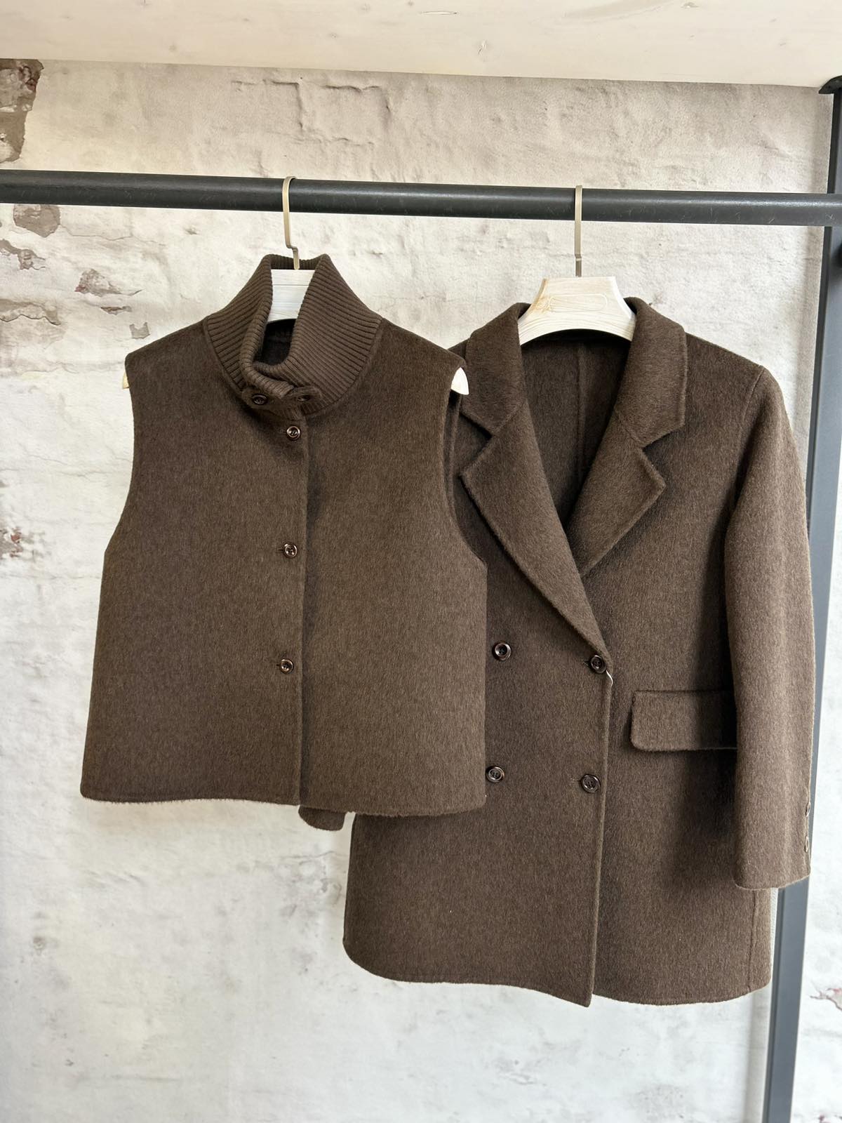 Дамско палто, което съчетава комфорт и изисканост, като предлага свободен и небрежен вид, който лесно може да се адаптира към различни ситуации и стилове. Към него в комплект върви и къс елек, които може да се носи заедно с палтото или самостоятелно.