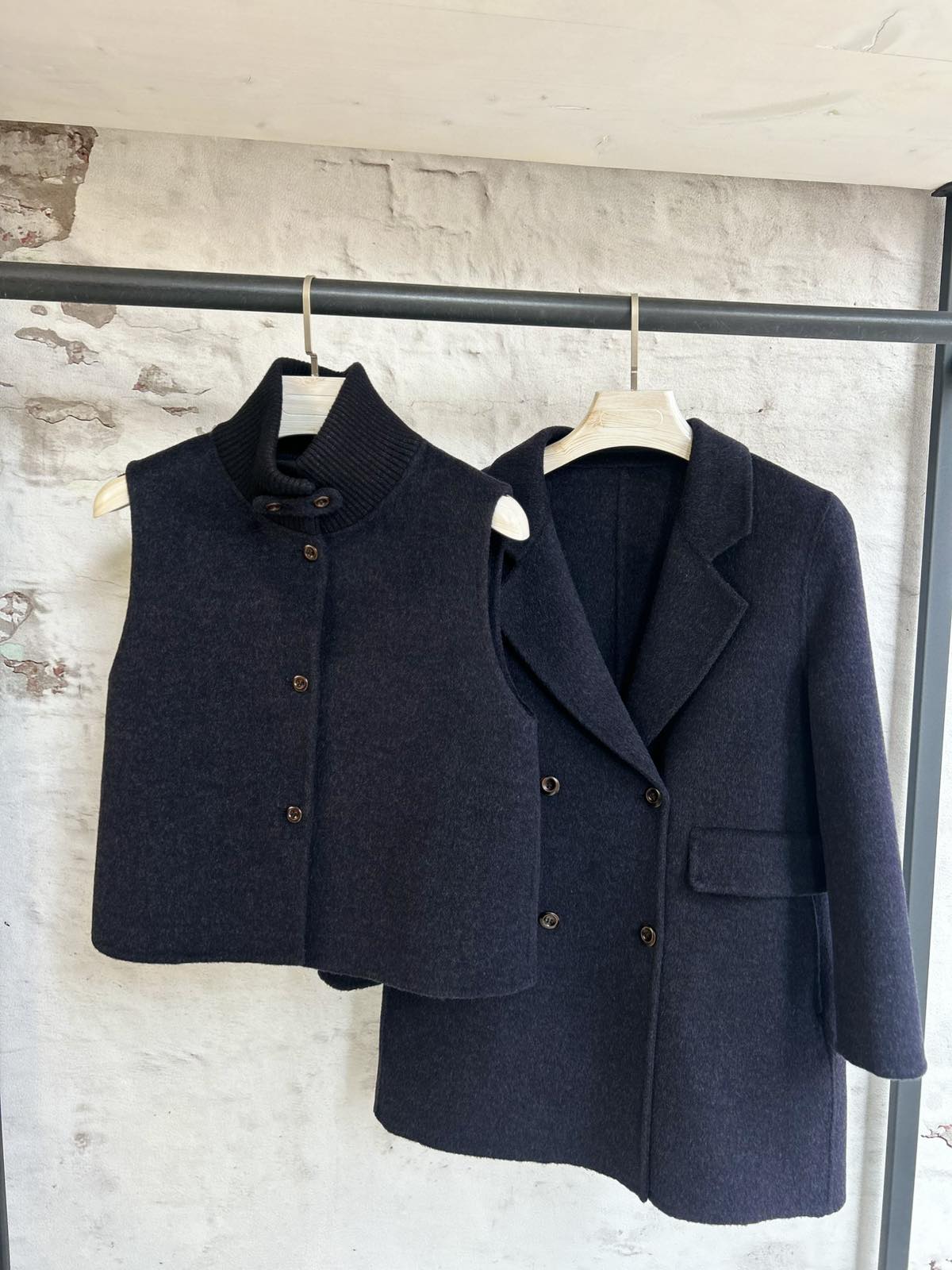 Дамско палто, което съчетава комфорт и изисканост, като предлага свободен и небрежен вид, който лесно може да се адаптира към различни ситуации и стилове. Към него в комплект върви и къс елек, които може да се носи заедно с палтото или самостоятелно.