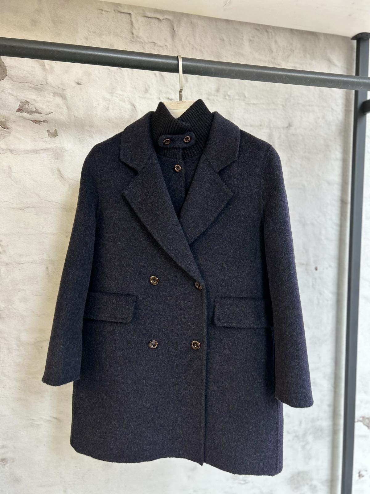Дамско късо палто с елек-тъмно синьо