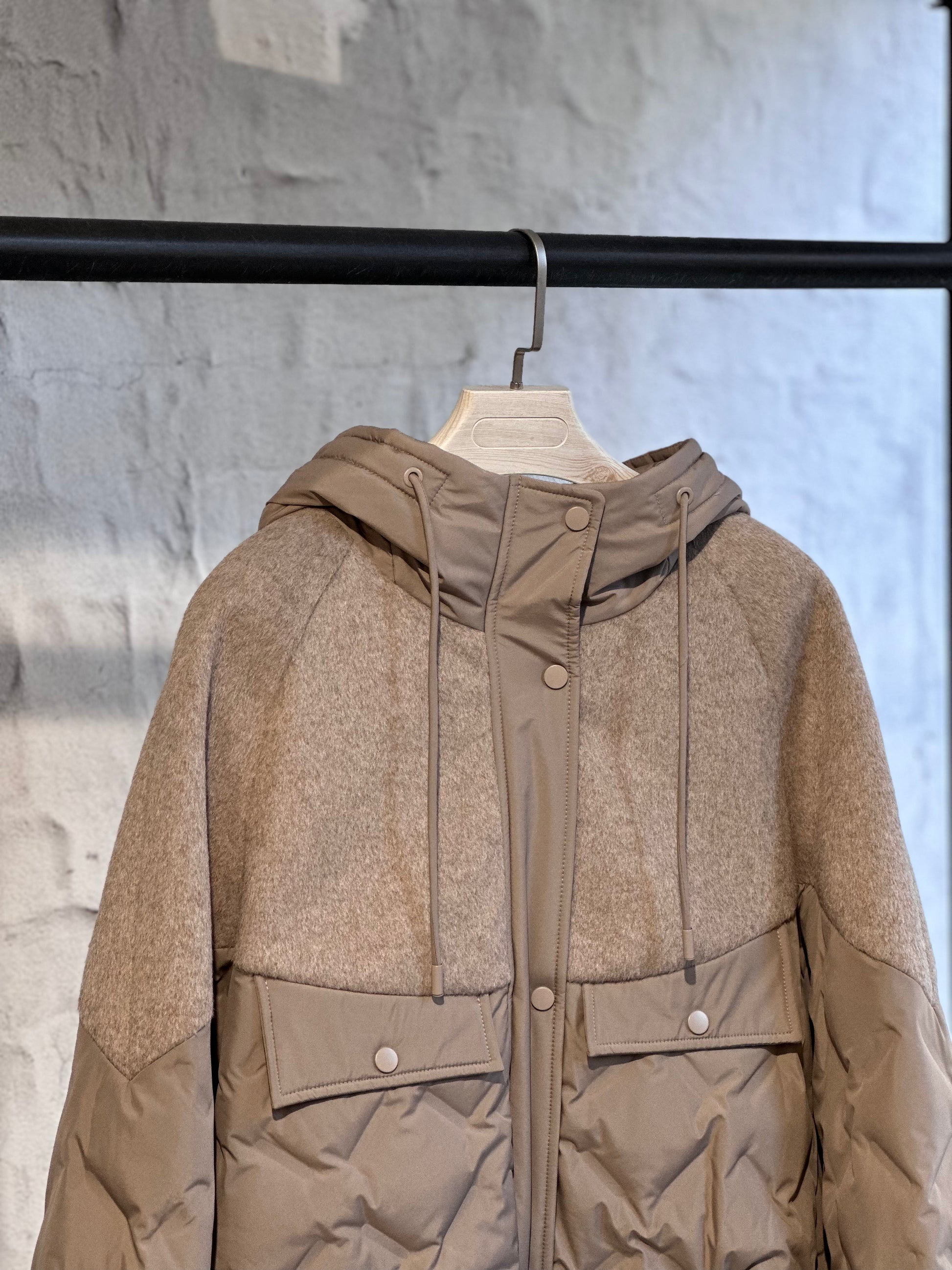 Това елегантно палто съчетава класически дизайн с модерни елементи. Моделът е леко умален. Размер М отговаря на S.