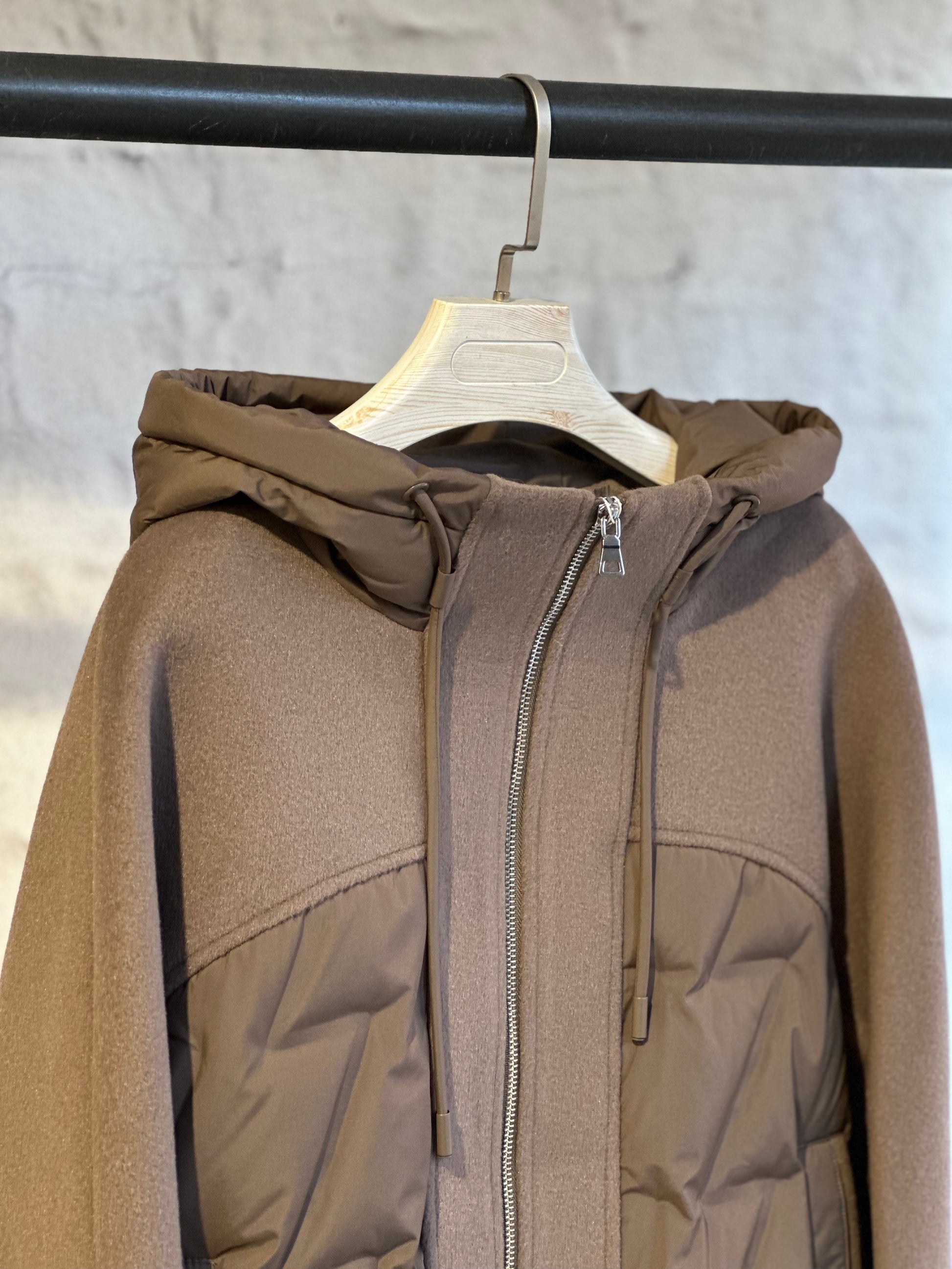 Това елегантно палто съчетава класически дизайн с модерни елементи. Моделът е леко умален. Размер М отговаря на S.
