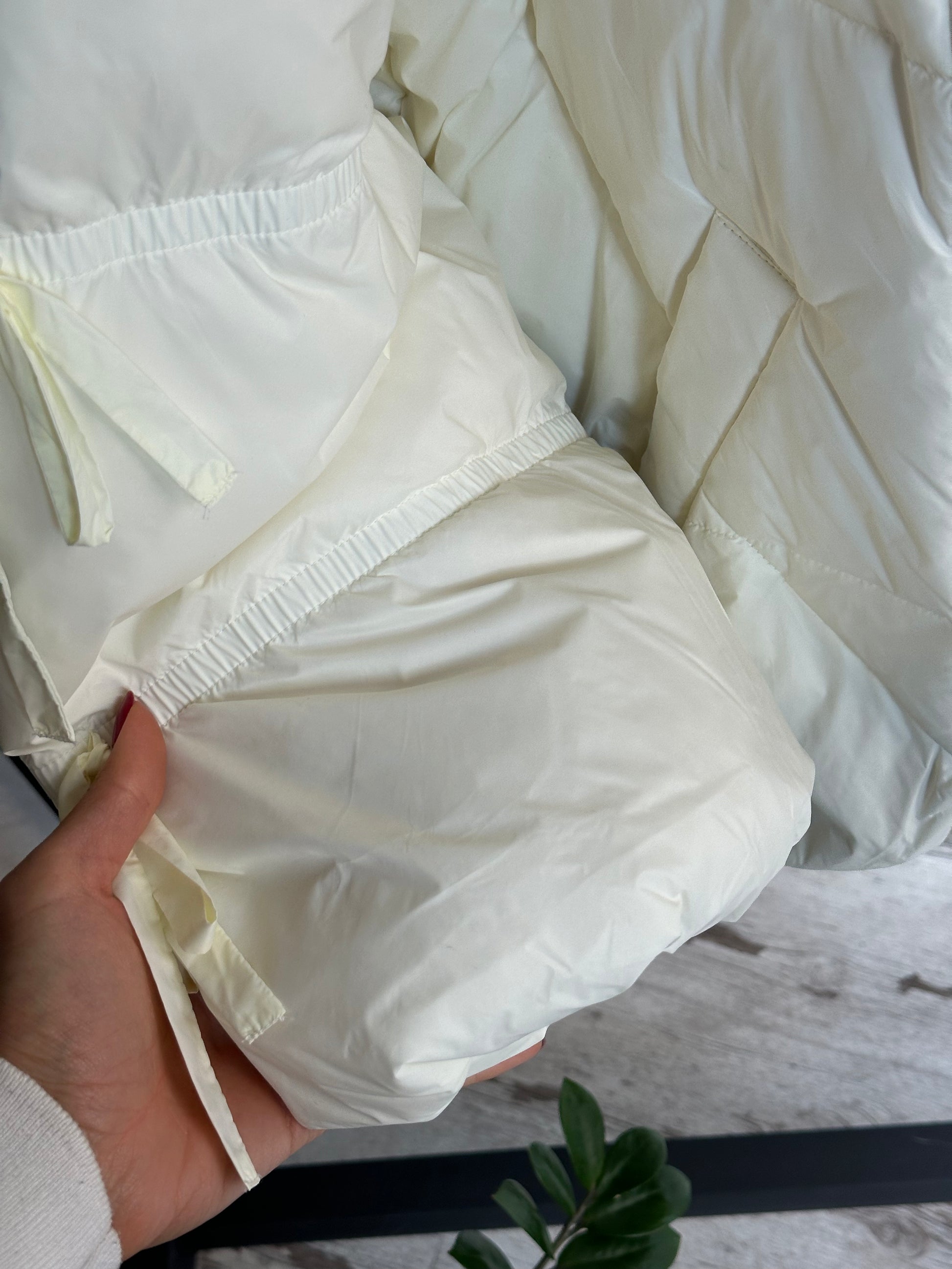 Дамско яке с гъши пух и естествен косъм- бяло