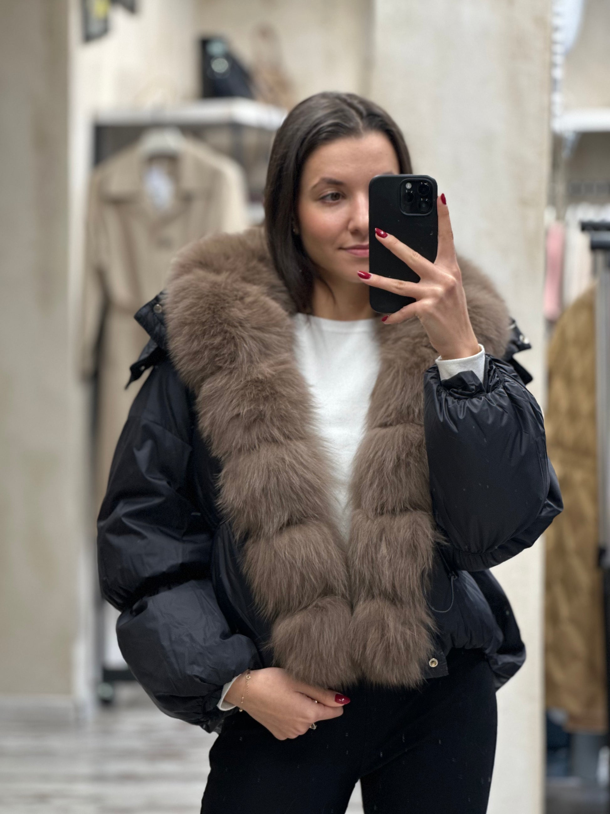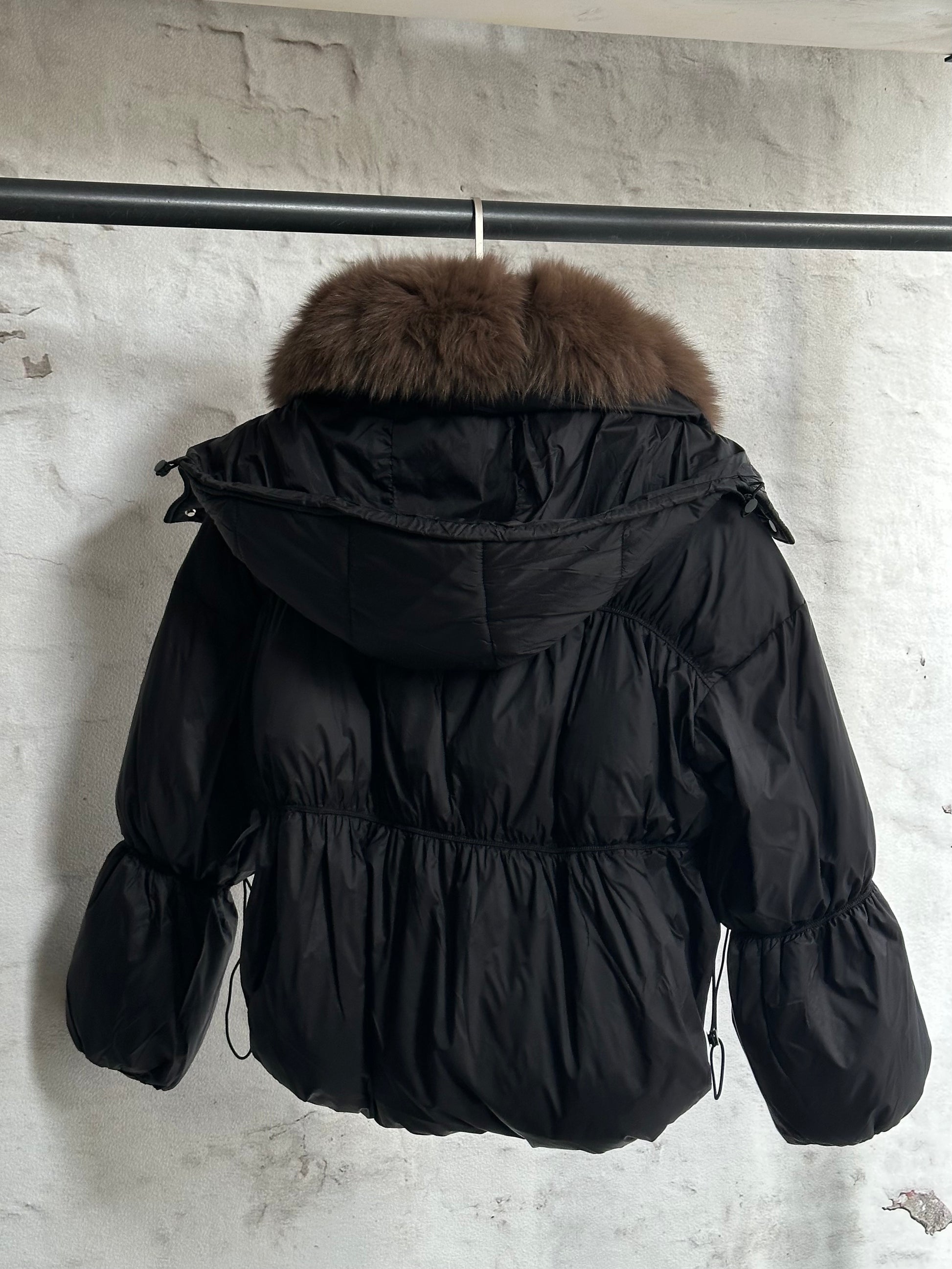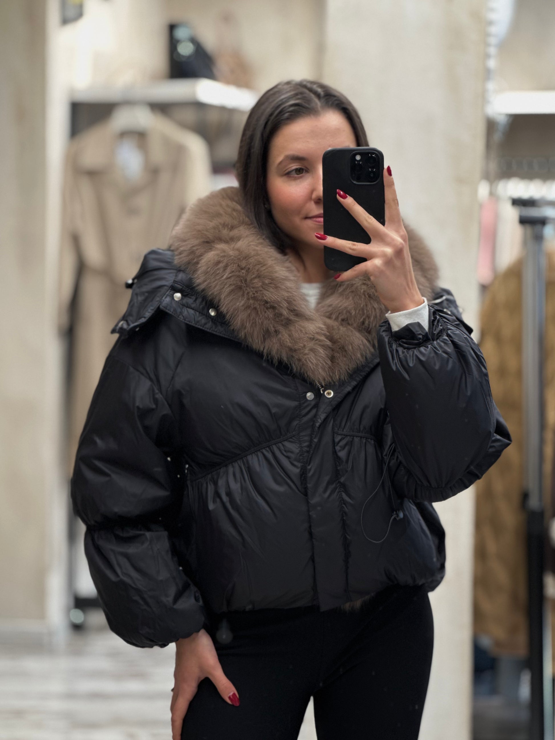 Дамско яке с гъши пух и качулка с косъм