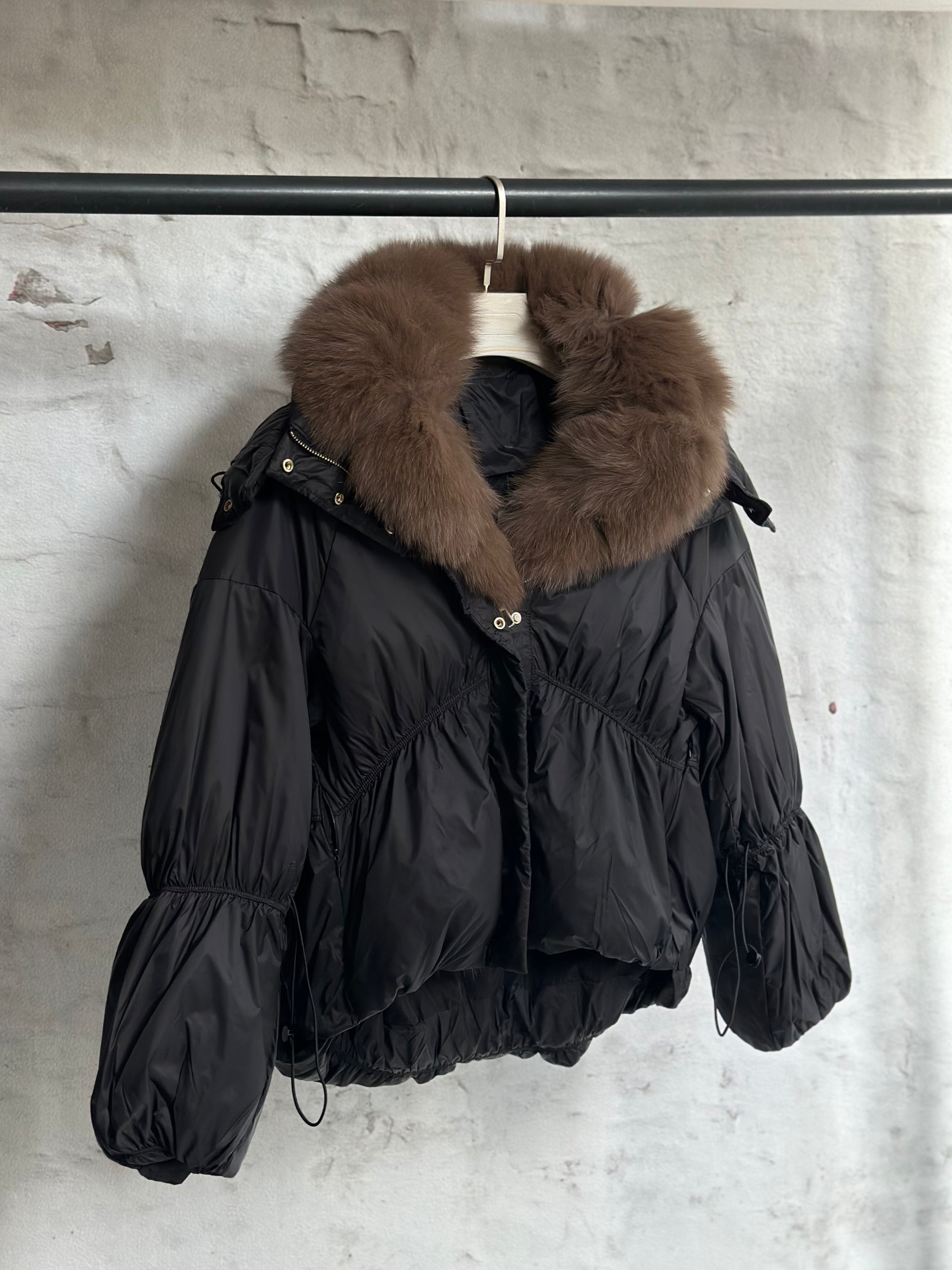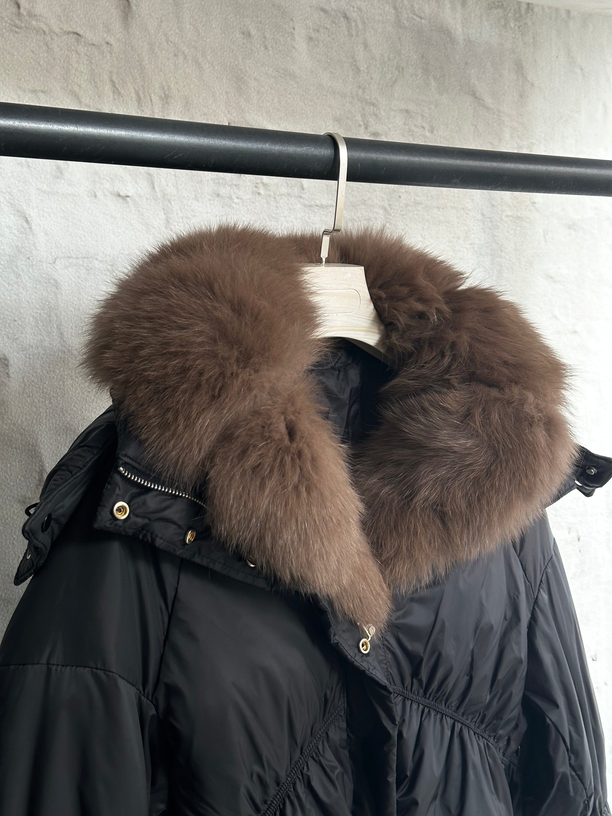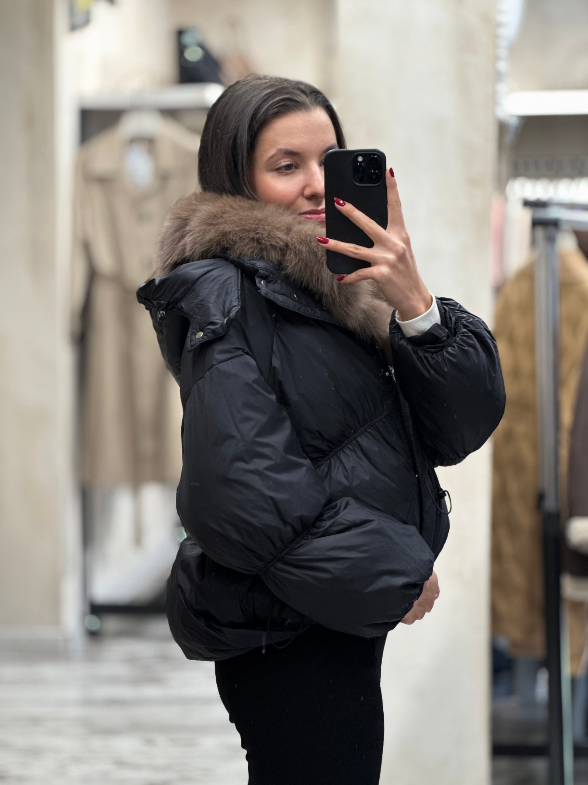 Дамско яке с гъши пух и качулка с косъм