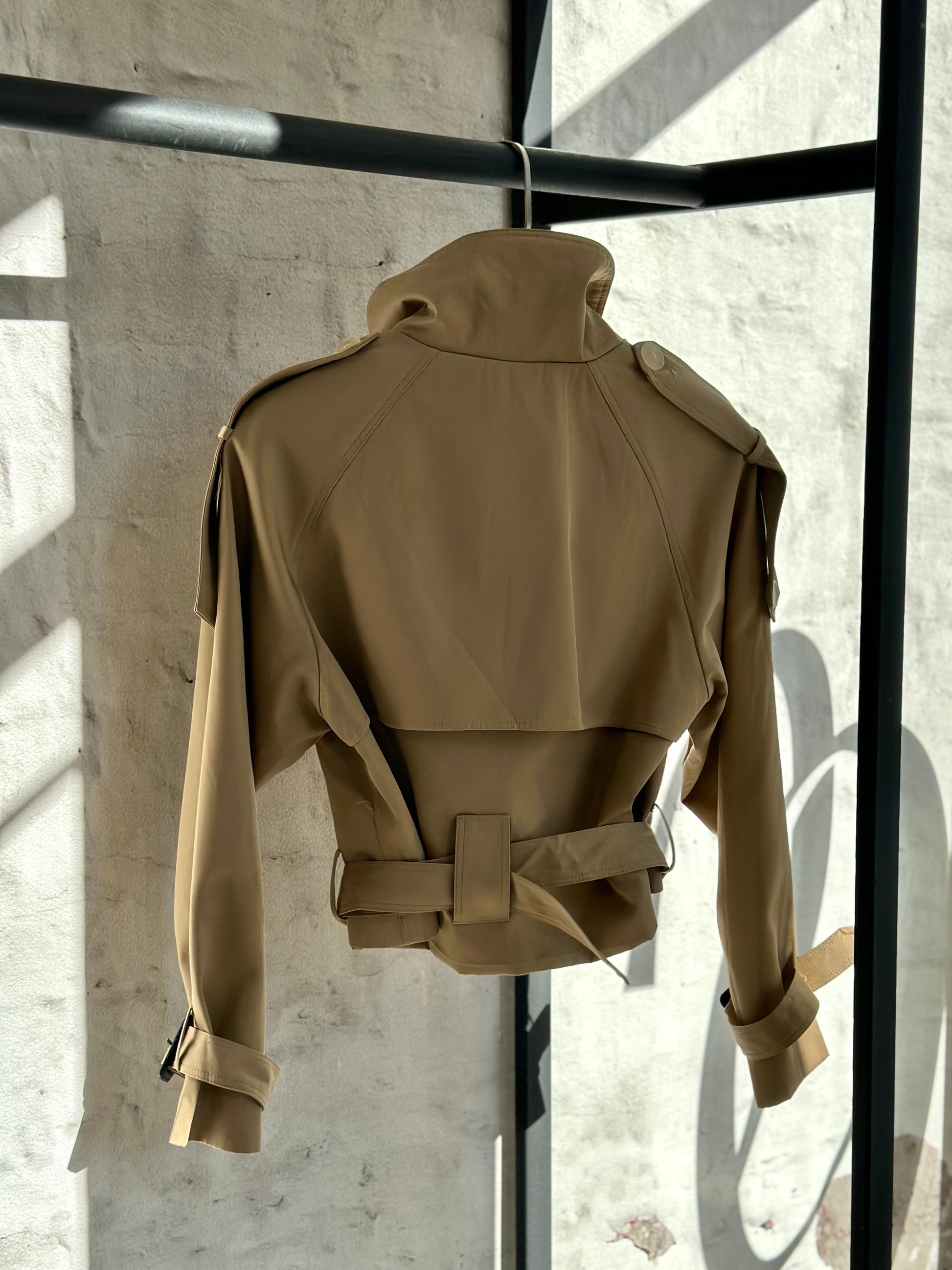 Късият шлифер е вечен фаворит сред любителите на стилната визия. Въпреки своята популярност, намирането на шлифер с перфектна кройка и качествен плат може да е истинско предизвикателство. Нашият шлифер обаче съчетава всичко необходимо- отлична кройка, която приляга идеално на тялото, и първокласна материя, която осигурява дълготрайна употреба.