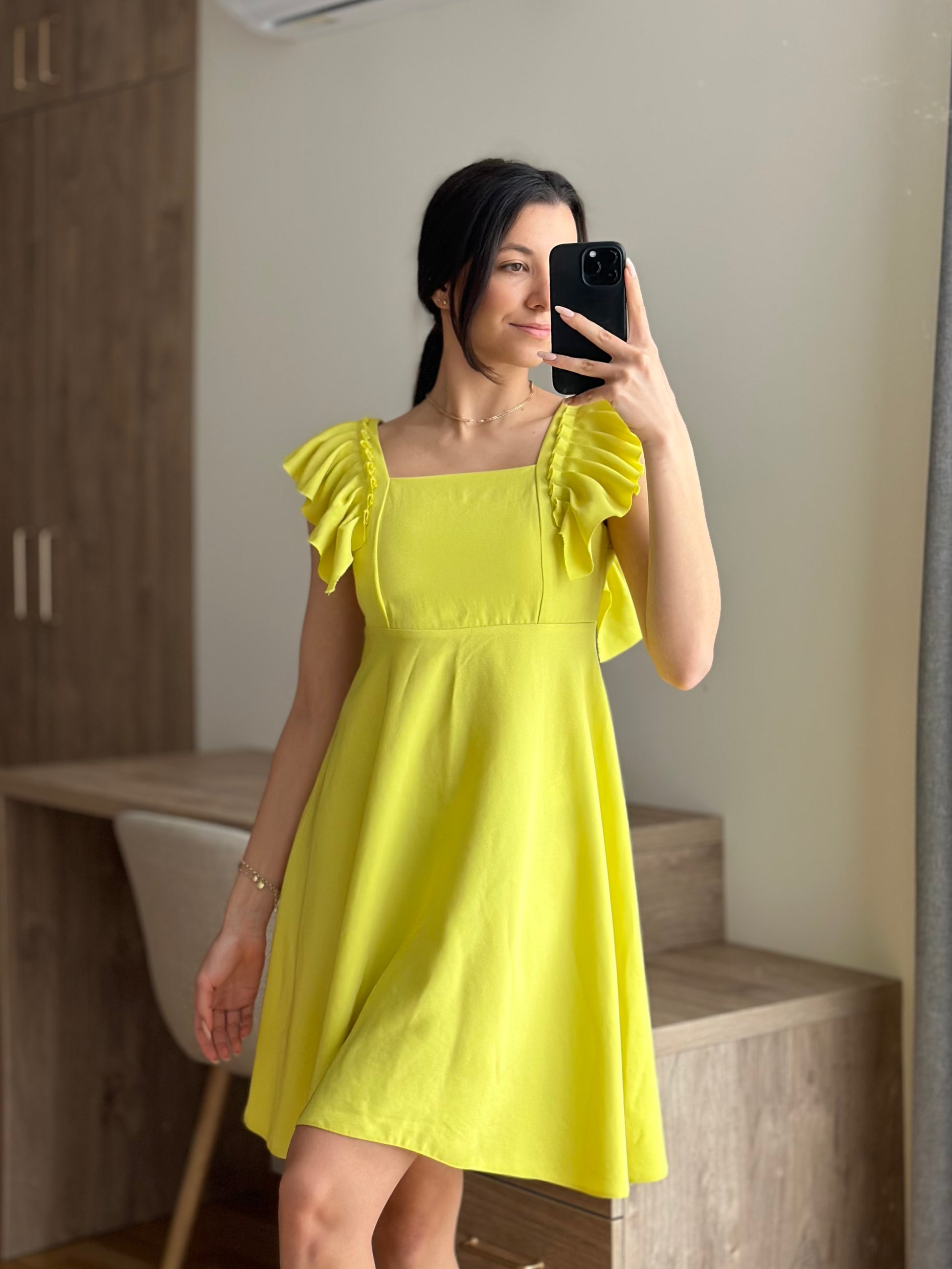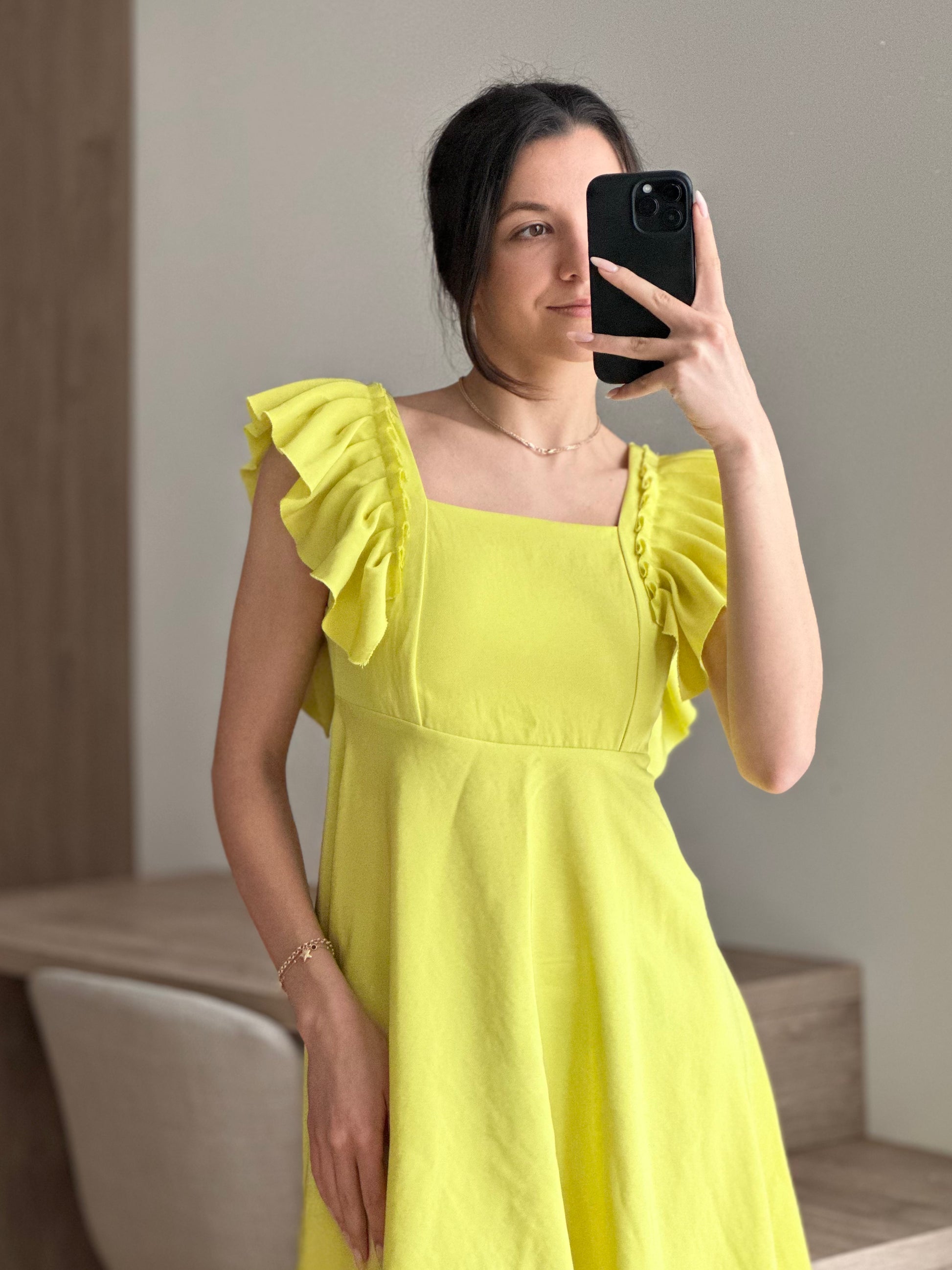 Лека, ефирна и елегантна - тази рокля е перфектният избор за топлите летни дни. Изработена от дишаща материя, тя осигурява комфорт през целия ден. Идеална за разходка край морето, летен брънч или вечерна разходка под звездите. Цветът е жълто-зелен.