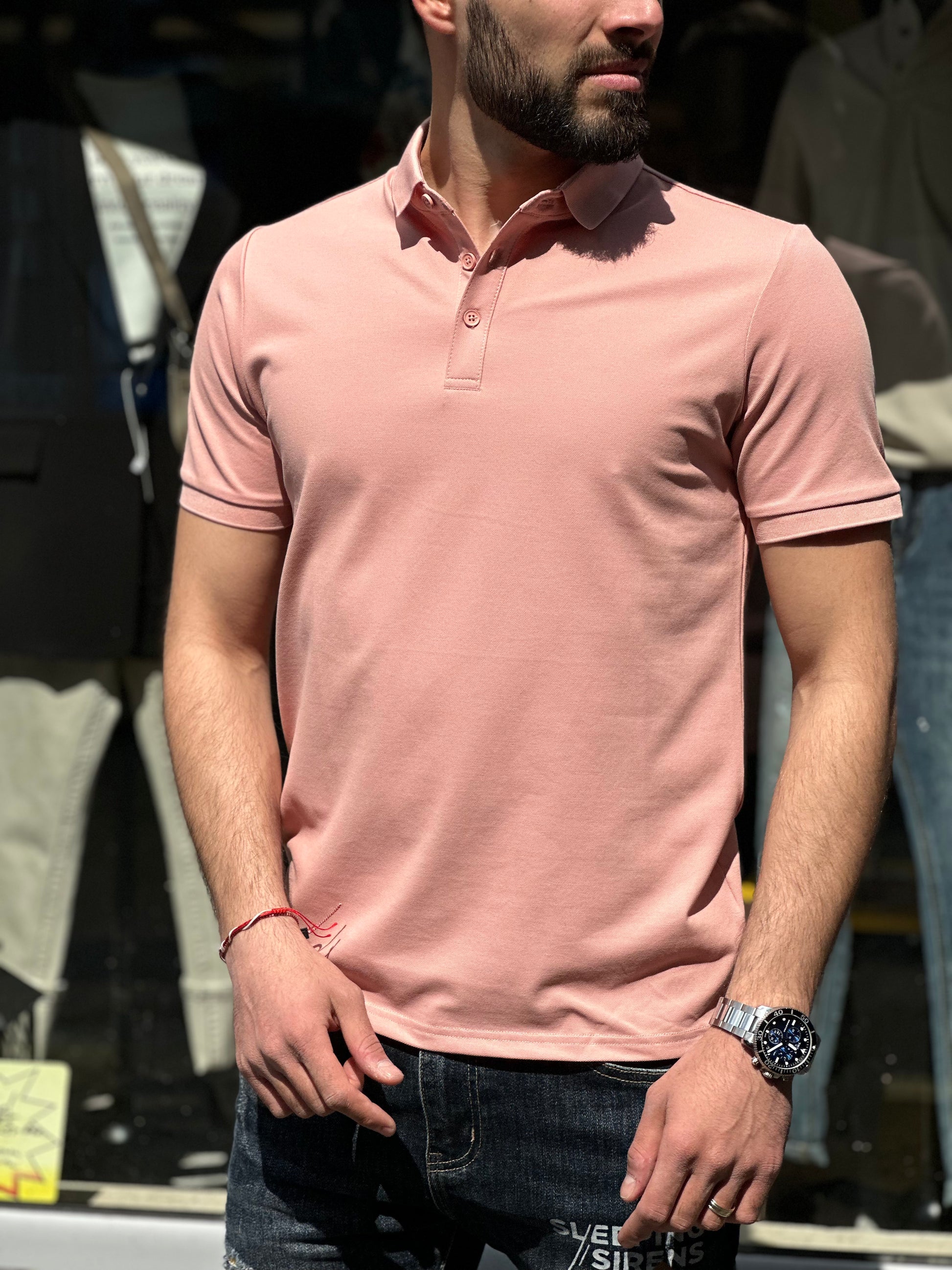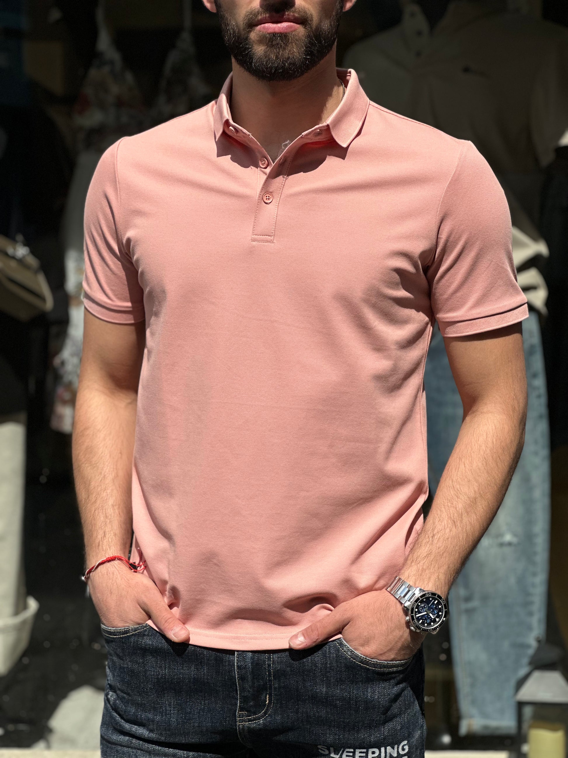 Мъжка розова тениска с якичка