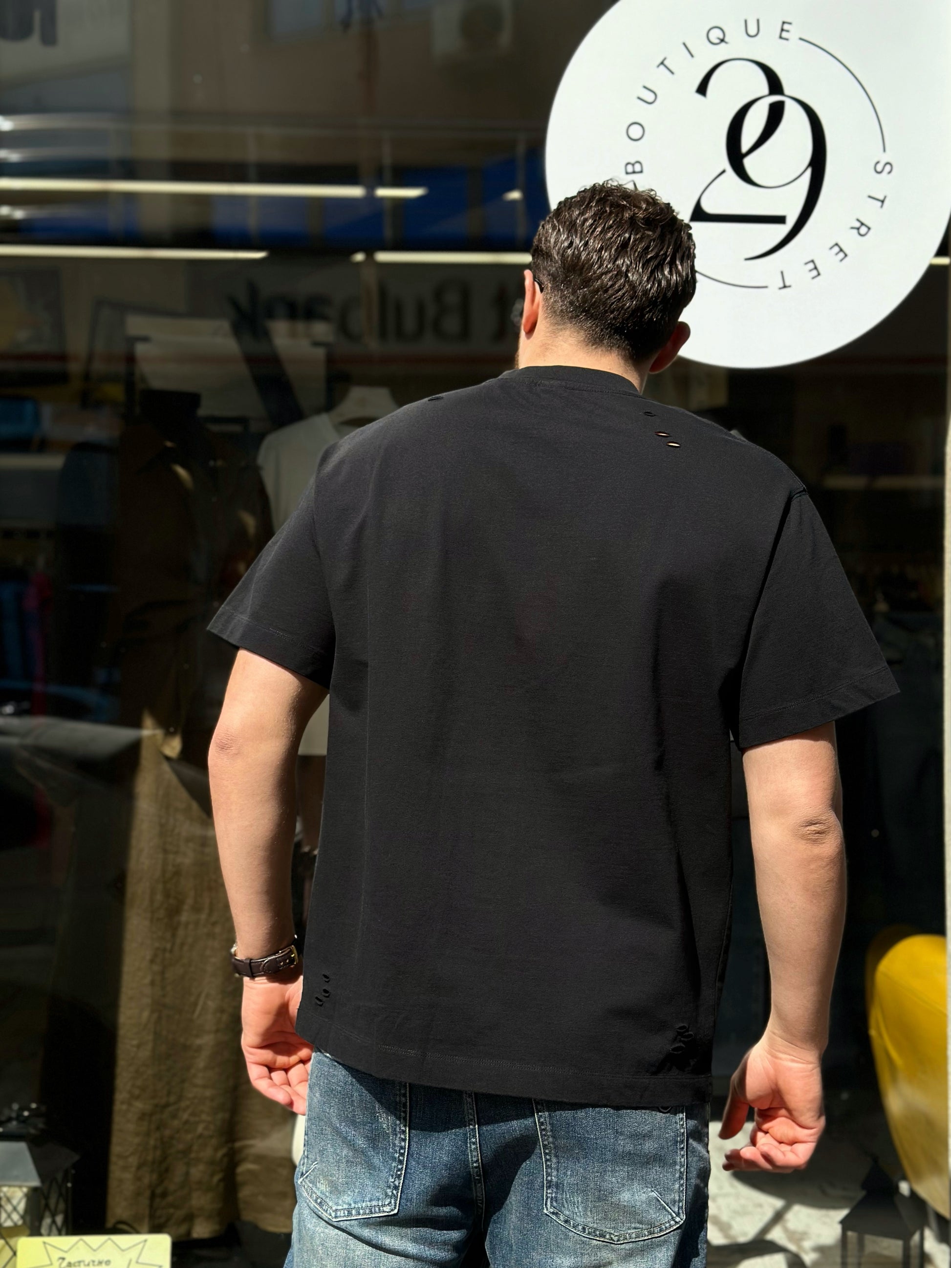 Този тип тениска (Oversized) е изключително популярен в стилове като streetwear и може да се комбинира с различни типове долнища – дънки, спортни панталони или шорти. Кройката е по-широка и свободна от стандартните тесни модели, като позволява лесно движение и създава по-естествен и релаксиран силует. Тази тениска има по-дълъг и по-широк ръкав, което допринася за по-непринуденото излъчване.
