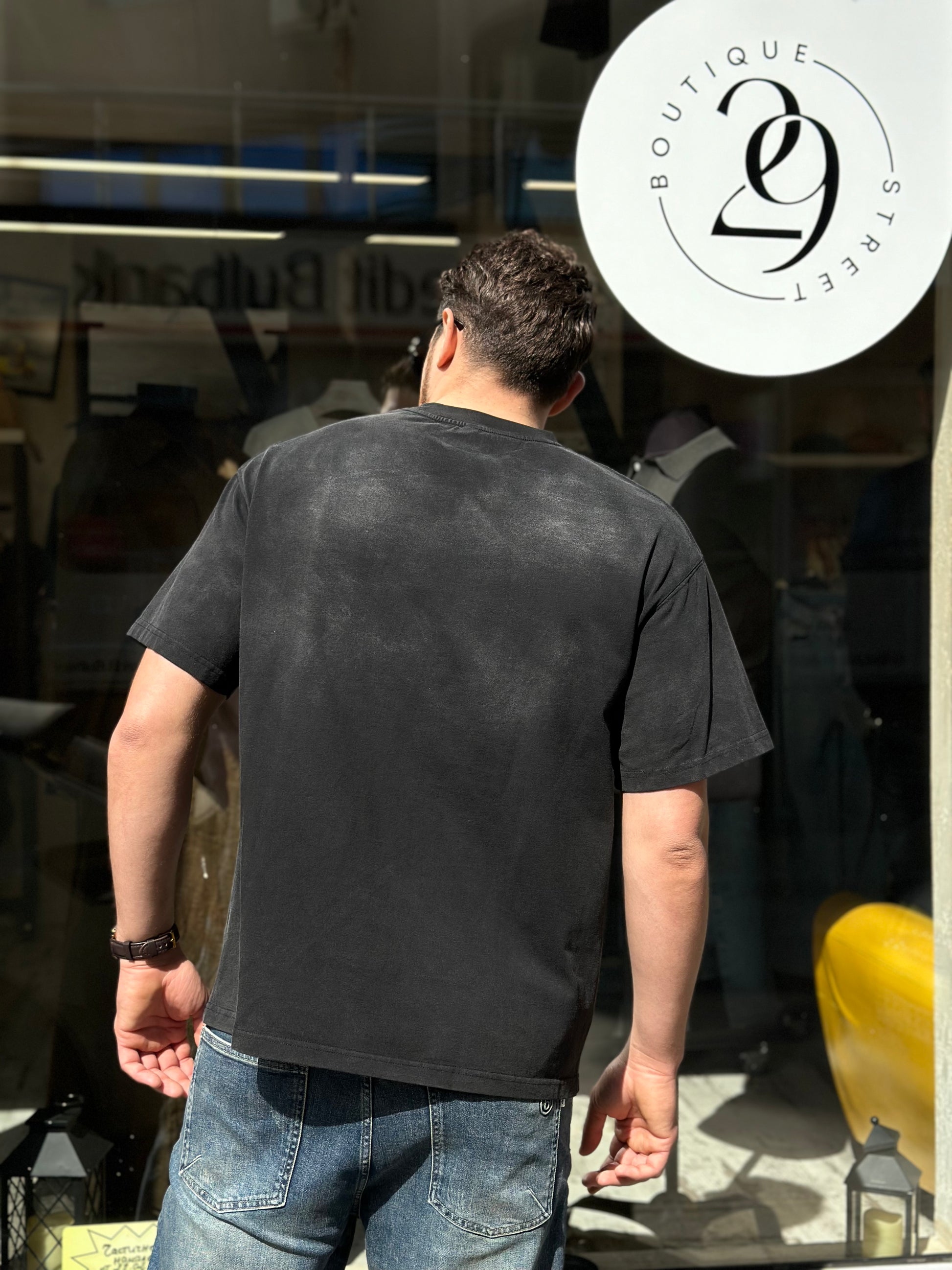 Този тип тениска (Oversized) е изключително популярен в стилове като streetwear и може да се комбинира с различни типове долнища – дънки, спортни панталони или шорти. Кройката е по-широка и свободна от стандартните тесни модели, като позволява лесно движение и създава по-естествен и релаксиран силует. Тази тениска има по-дълъг и по-широк ръкав, което допринася за по-непринуденото излъчване.