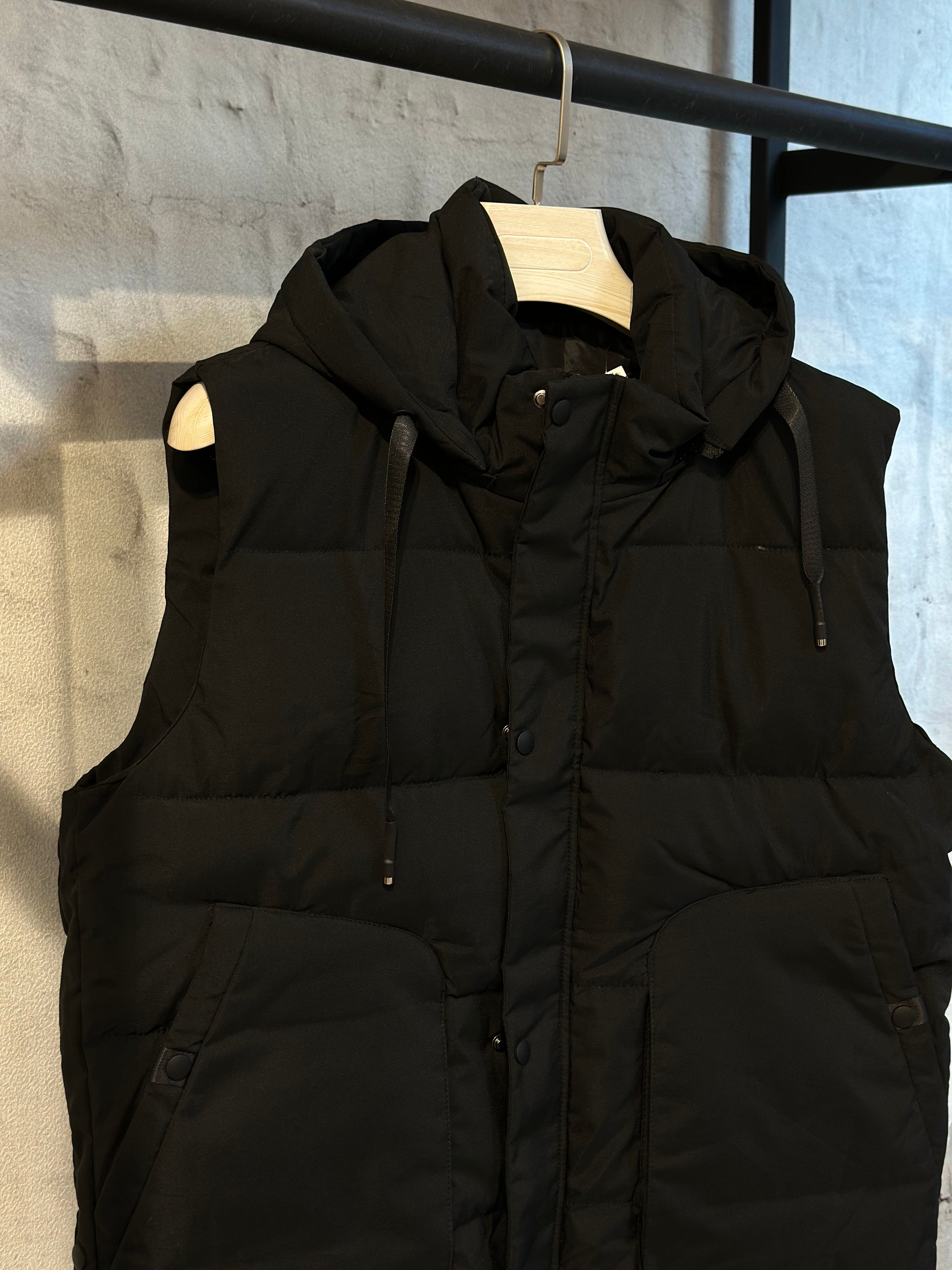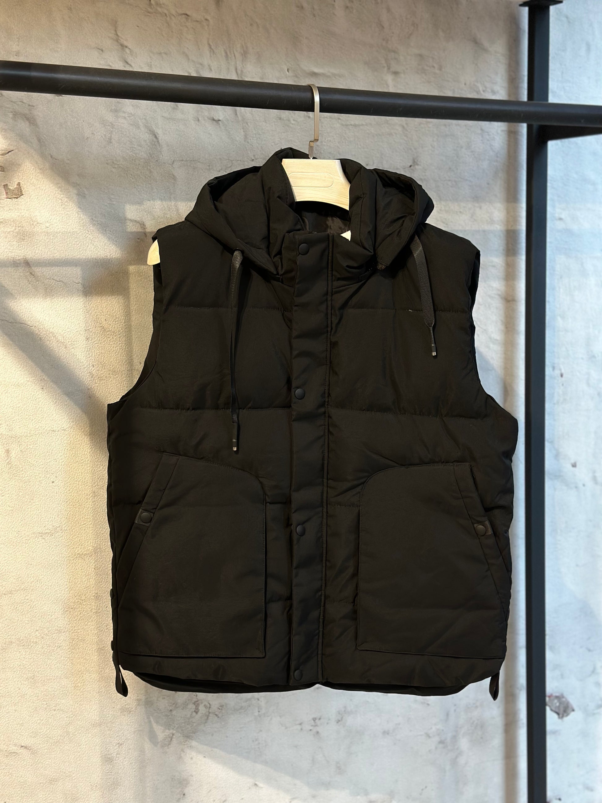 Този елек с качулка е лек, но изключително функционален и удобен елемент от гардероба, който съчетава стил и практичност. Качулката осигурява допълнителна защита от дъжд и вятър, а синтетичната изолация вътре гарантира топлина без да добавя излишна тежест. Моделът е леко умален!