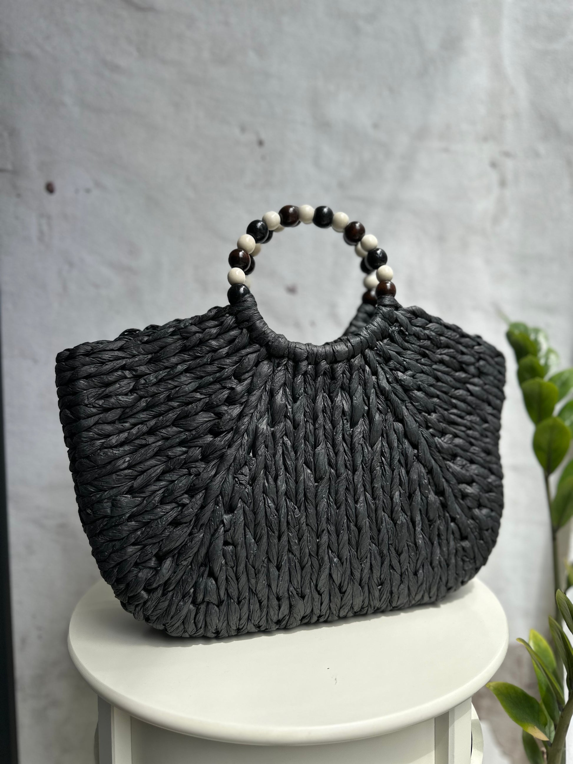 Развихри въображението си и добави уникална нощта към твоя тоалет с тази плетена дамска чанта. Снабдена с удобна дръжка и налична в два цвята- бежов и черен. 40х28 см.