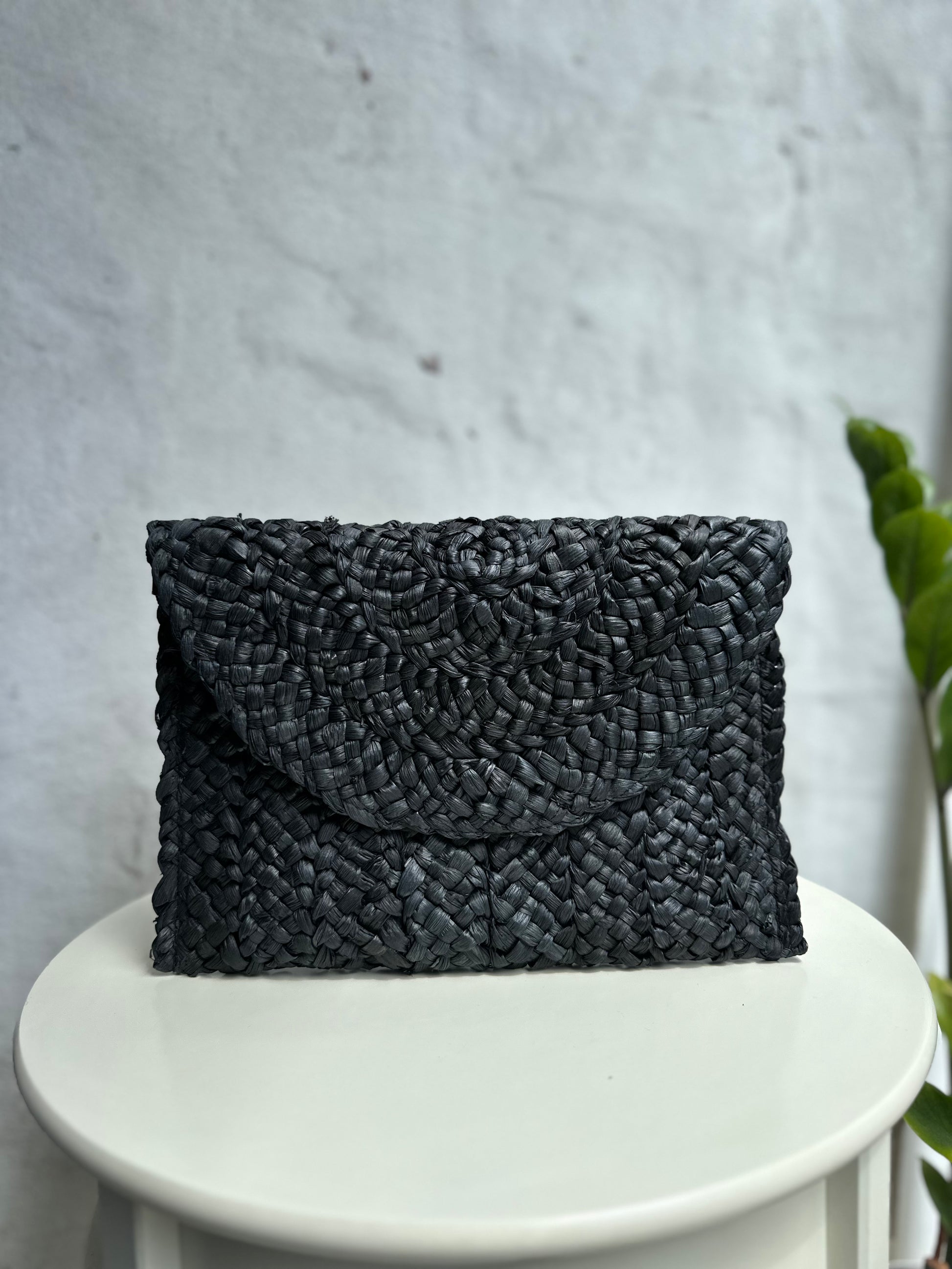 Развихри въображението си и добави уникална нощта към твоя тоалет с този плетен дамски клъч. Наличен в два цвята- крема и черен.28х20см.