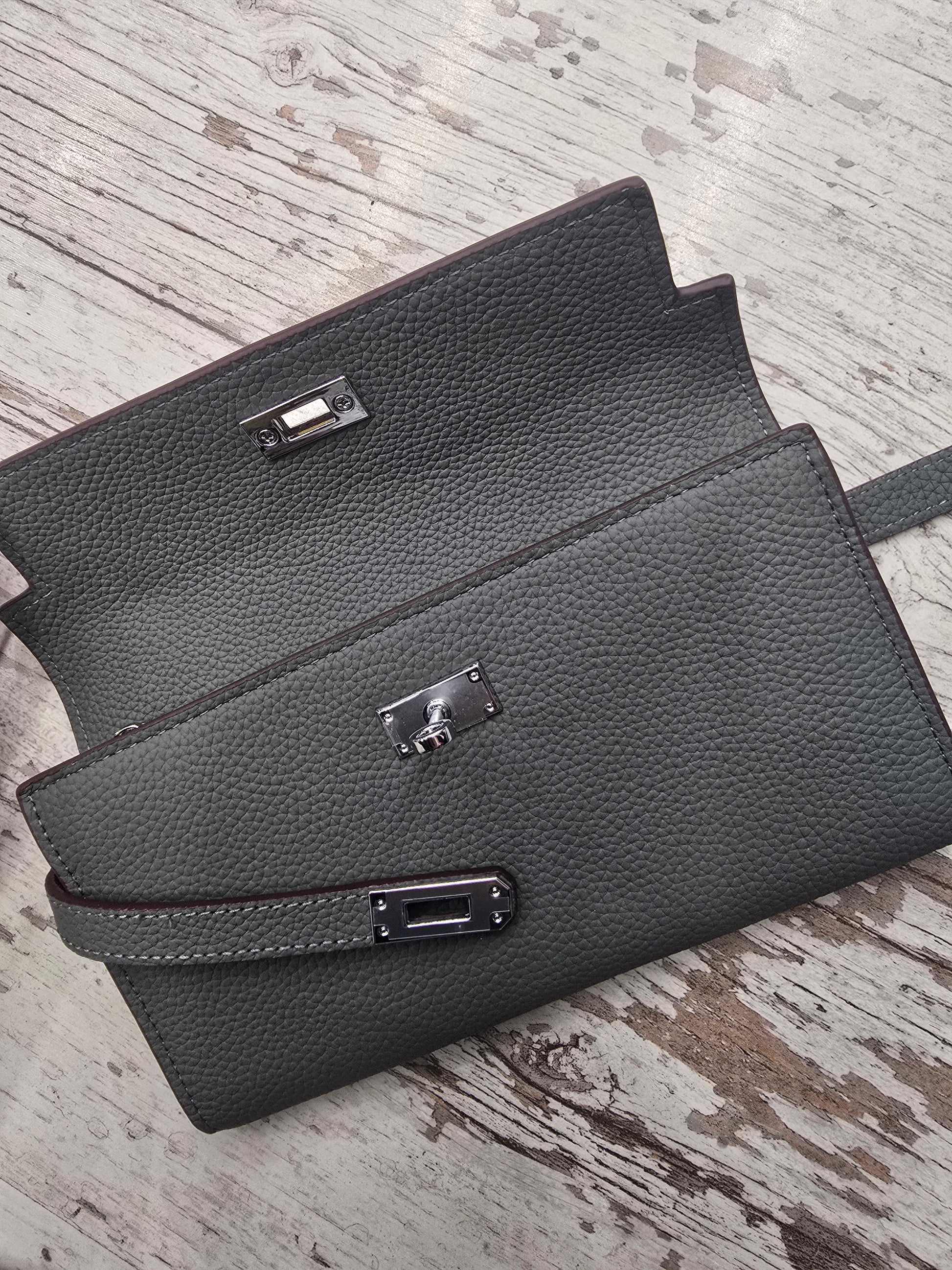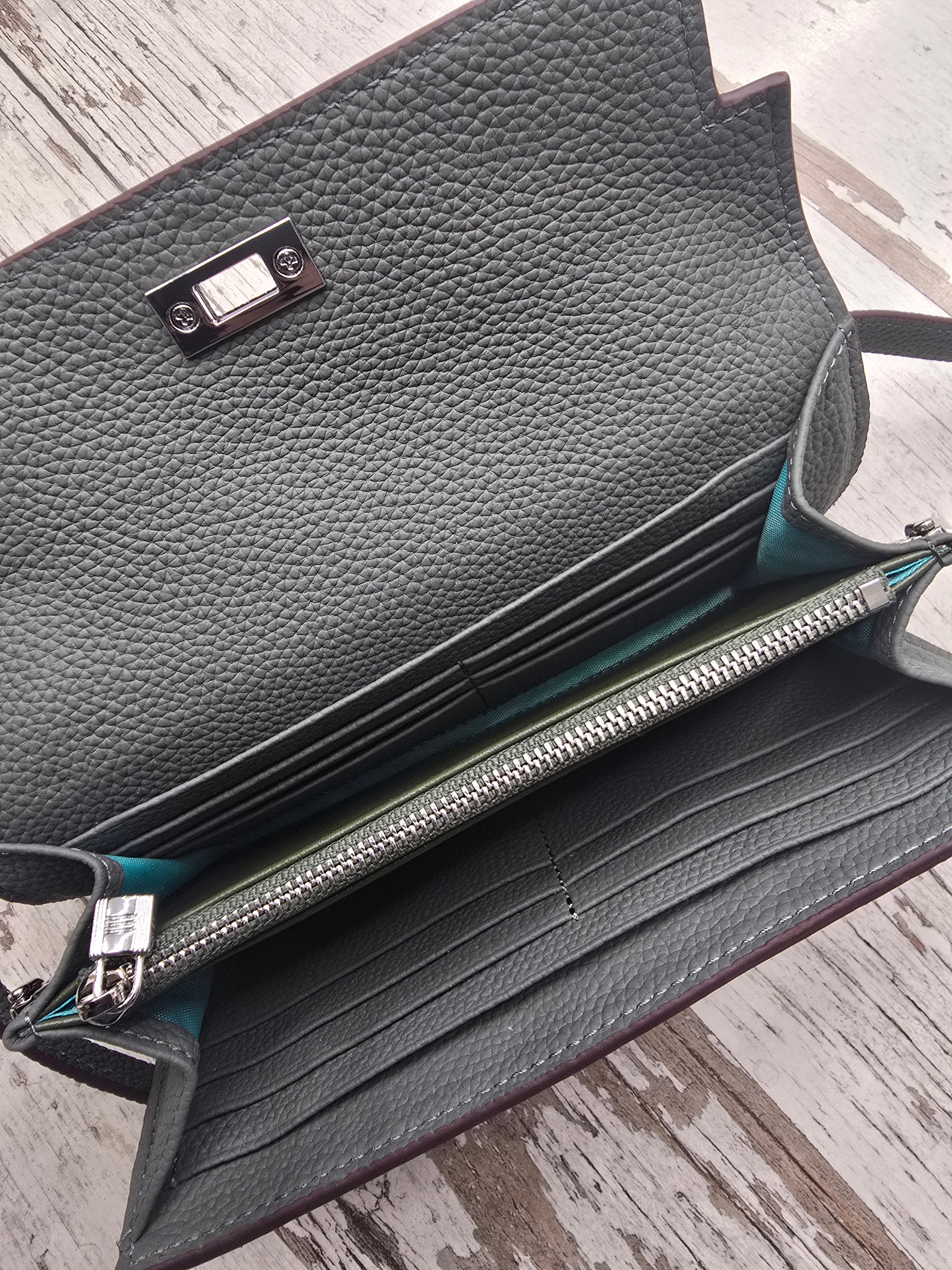Елегантен портфейл от естествена кожа с изчистен дизайн, с фина релефна текстура и стилно метално закопчаване. Компактен, но изключително практичен – събира всичко необходимо и придава завършен луксозен акцент на всяка визия.